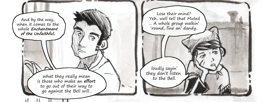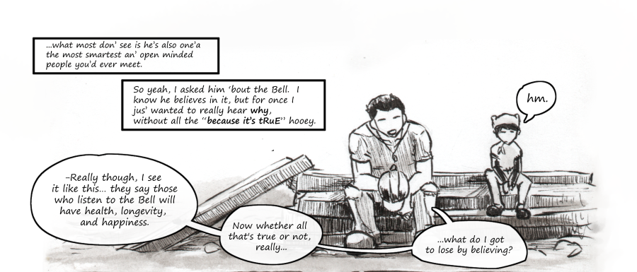 In the little remote town of Epir, there are two things to know: First, if you want the best gear for your next fishing trip, head over to Bloo’s Bait & Tackle. And second when the mighty Bell from deep in the forest rings out, stop what you’re doing and listen good and well. For if you don’t, it’s said the Bell will take you away. When Jeal’s mother mysteriously disappeared one night, all the towns people agreed she must’ve been unfaithful to the Bell’s call. However, when Jeal gets mixed up with the Muted Society; a cult-like group who proclaims their defiance for the Bell, things get a little unclear about just what happened to ma.