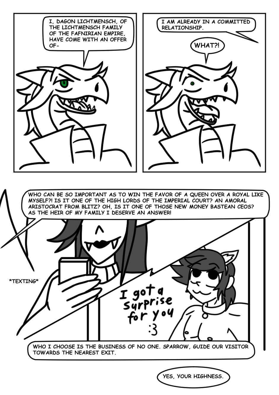 Morkana and Flamewing have to keep their relationship a secret from most people. Also, the two of them have some interesting ways of foreplay.