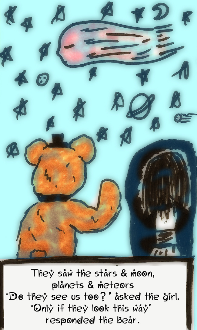 The story is about a young girl and her teddy bear going on a journey together working on the girl's problems. It's more complicated of course and there are a lot of character's they encounter.