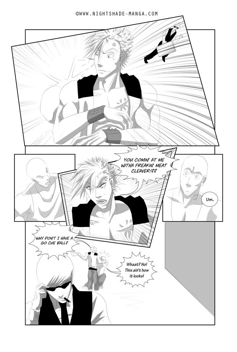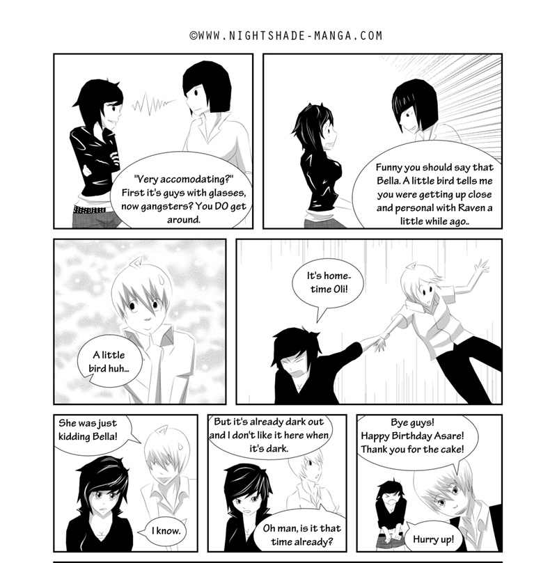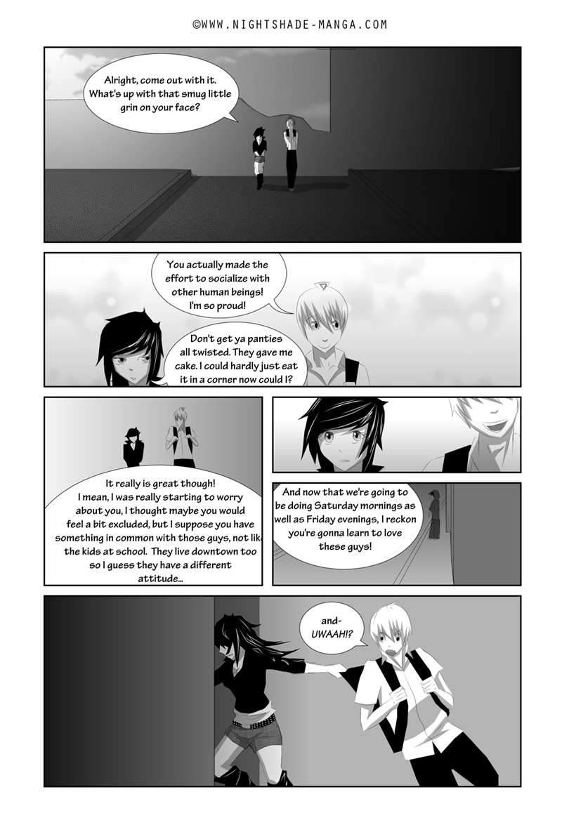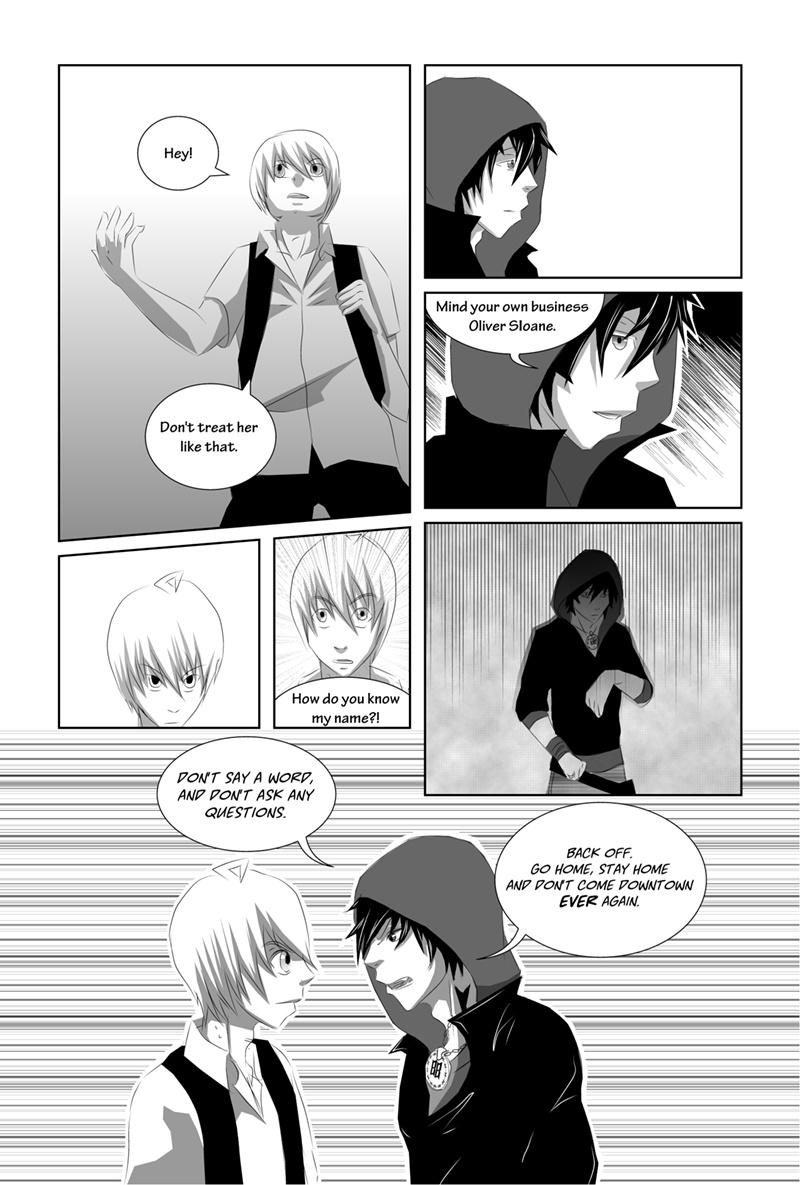 Nightshade is a shonen-mystery-style series, full of twists & turns with a light-hearted comedy side to contrast! The story is kicked into action by Oliver Sloane as he sets out to uncover the identity of the deadly anonymous hacker known as "Nightshade". Uptown-resident Oliver recruits his Downtown friend "Bella" and ventures out to meet with an established team committed to the unmasking of Nightshade. There'll be a new chapter every MONDAY!
