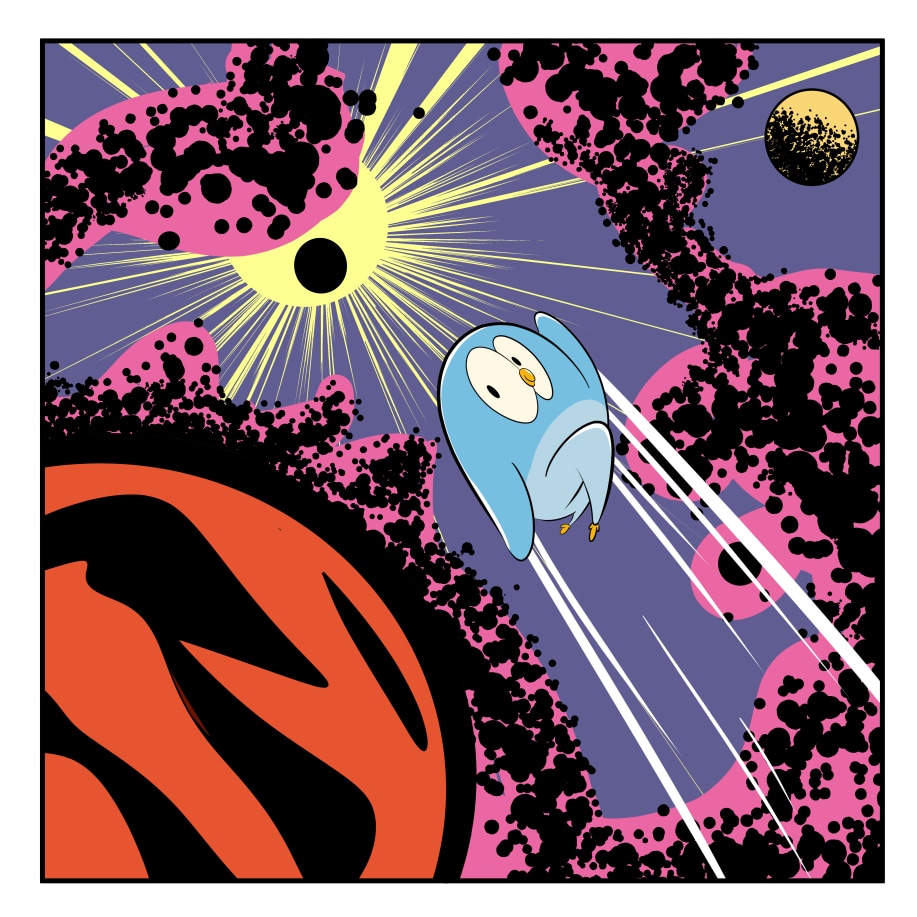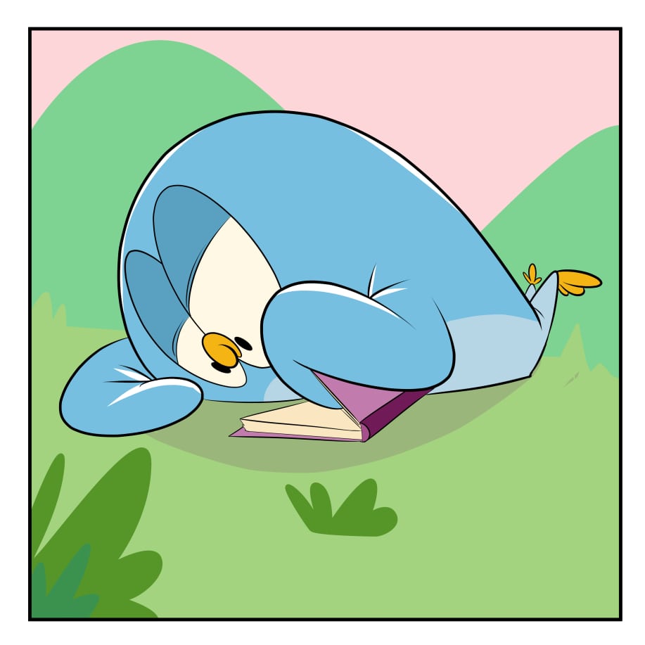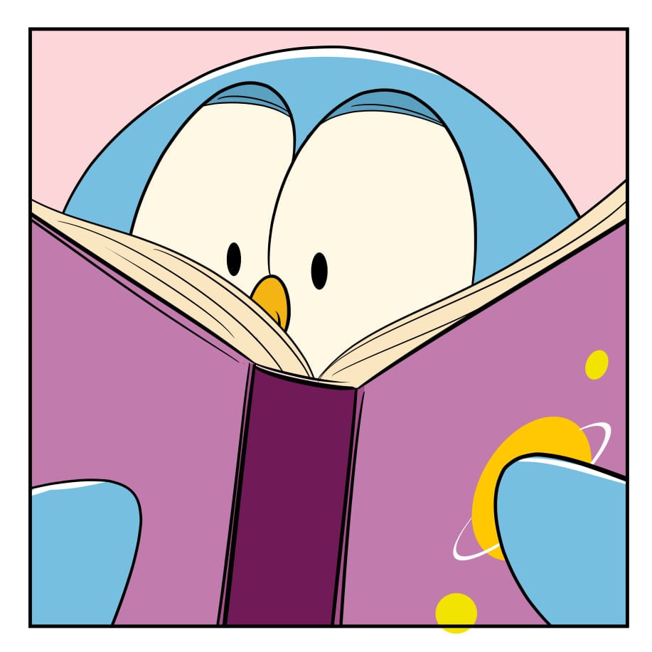 Wondrous and kindhearted, this curious blue penguin, will often get lost in a book ,drawing or his own imagination. From intergalactic space battles to underwater discoveries to soaring escapades in the sky. Each day is a new adventure for this unknowing hero.
