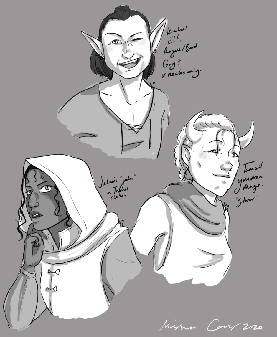 Another Teaser--Here are the main cast of The Wolf and the Lily: Kaliel, and elf and the rogue/bard. Tamsil, a Y'moran and a mage. and another version of Julaeis, as they appear in the first chapter. This coming Wednesday all of Chapter 1 will be available, as well as more info about the comic.