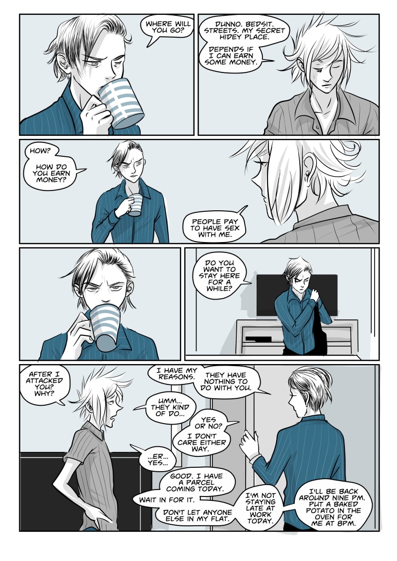 So you braved Worlds Apart: Part One's twists and turns, by which I mean it's melodrama and questionable art, and now you come to Worlds Apart: Part Two. Jack, with the help of his stolen money and fake identity, has finally managed to build himself a brand new life. He owns a car, he owns property, and he owns a business. He's free from the violence and abuse that life with Tony brought him, and free from the insanity of being around Kay. ("Or is he?" The reader mumbles, side eyeing the cover picture to the left. "We'll fucking see about that.") Horrific childhood memories aside, life should now be all sunshine and roses as Jack embarks on the only life he's ever wanted: One of drama free monotony. Worlds Apart is a real life fantasy with mature themes. Part 2 is the darkest part of all the Parts. Be warned. Be 18 or over etc. Warnings for: Suicide attempts, references to child abuse, violence, rape and drug use. Swearing, if you need a warning for that. In general, none of the above (except maybe the violence) will be particularly graphic, I have to adhere to SJ's TOS after all, but be warned anyway.