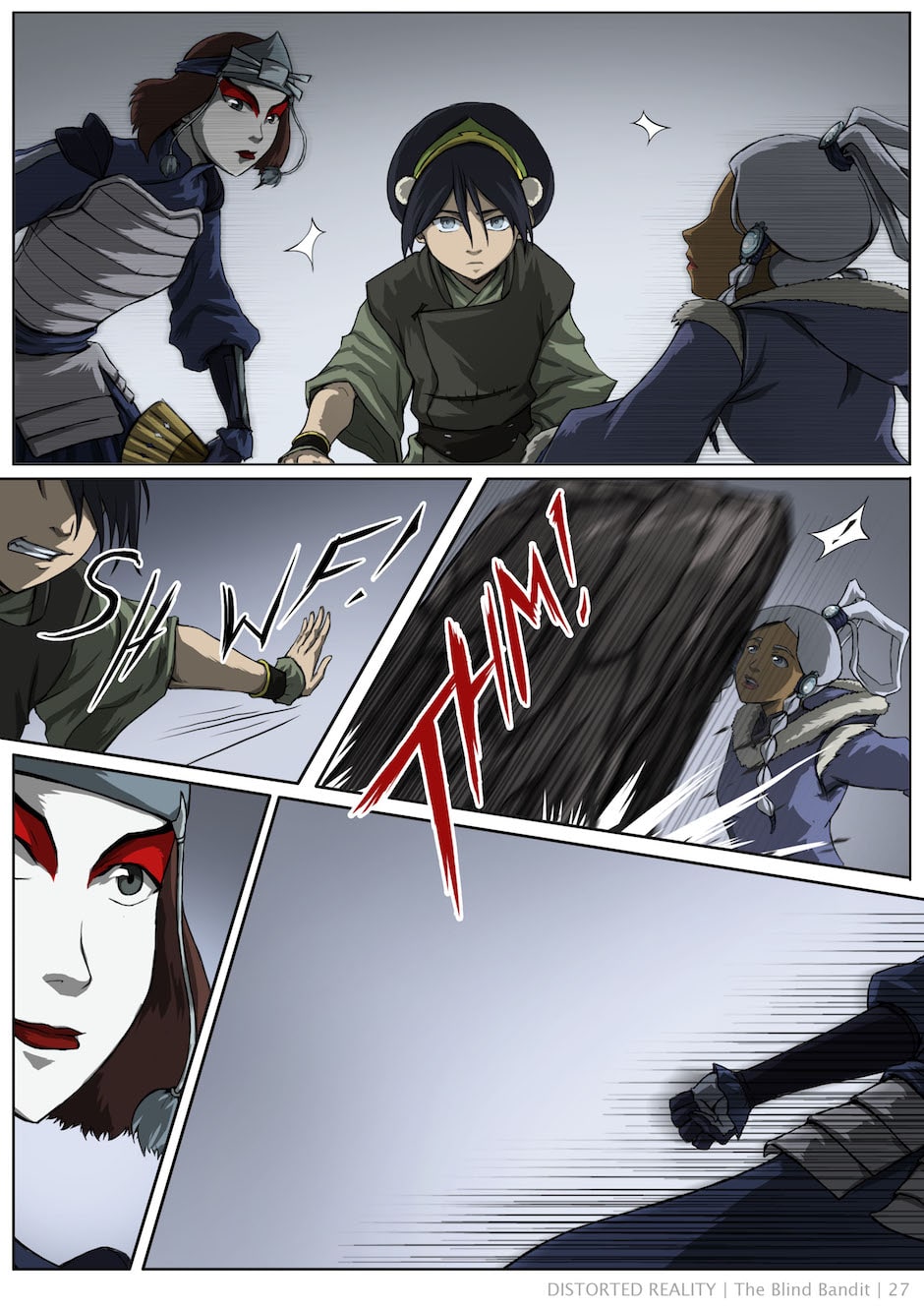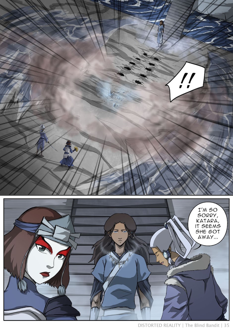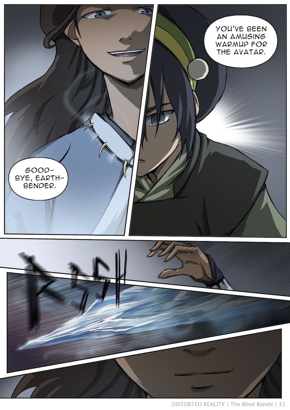 A few scattered scenes adapted into comic form from Baithin's Avatar fanfiction, Distorted Reality. For the full story, check out the original fanfic: https://www.fanfiction.net/s/3952155/1/Distorted-Reality