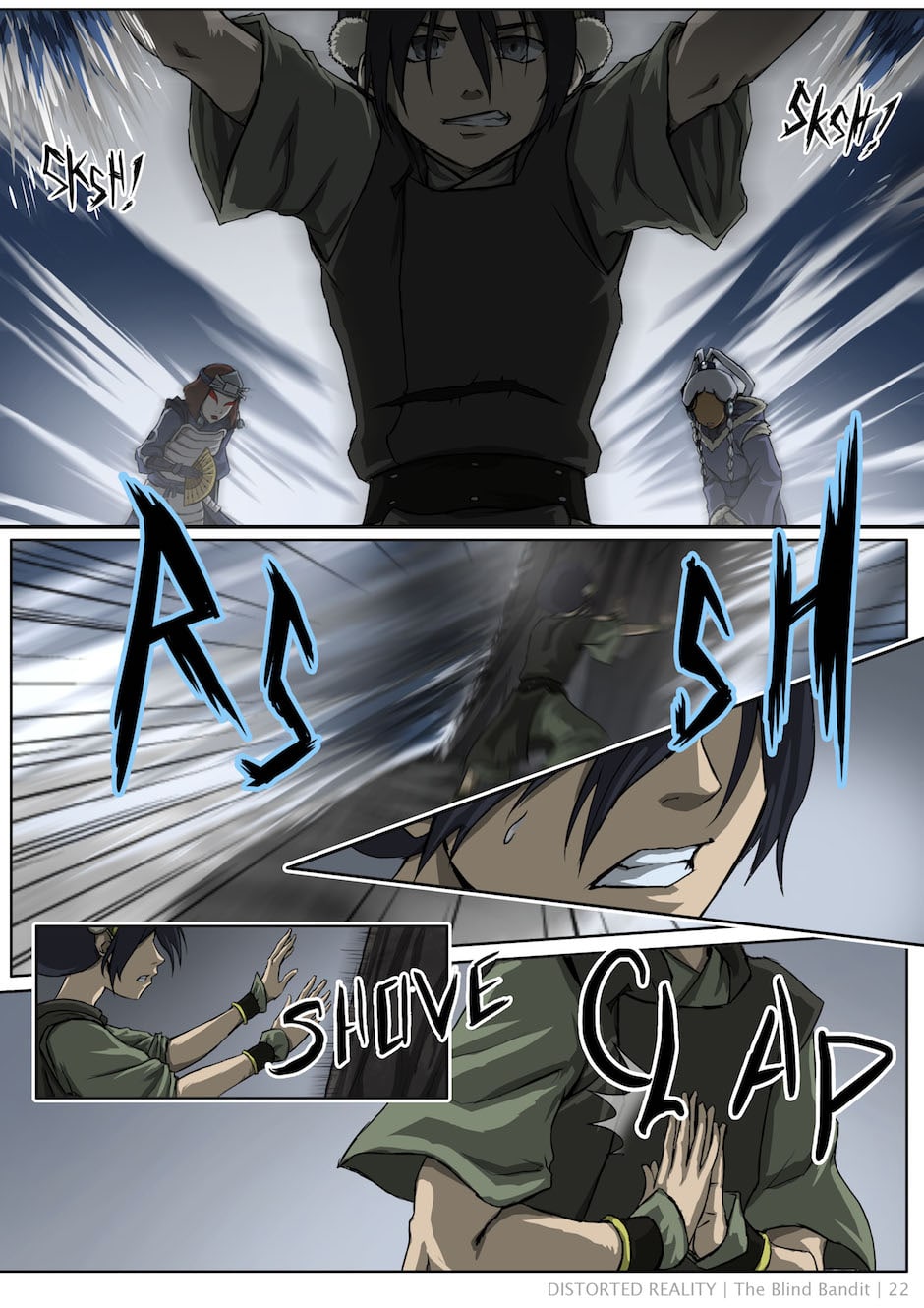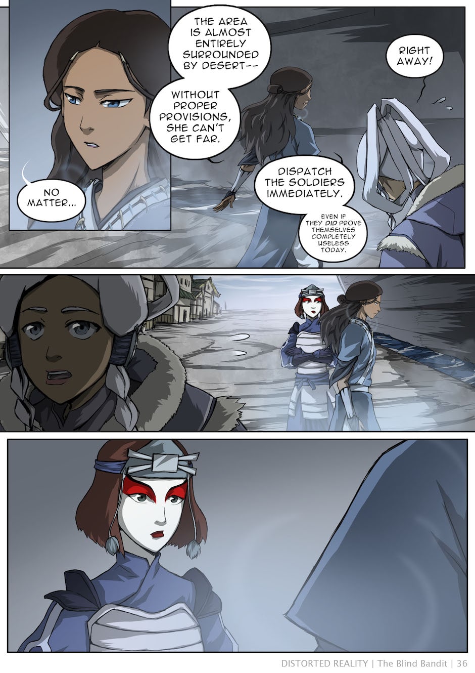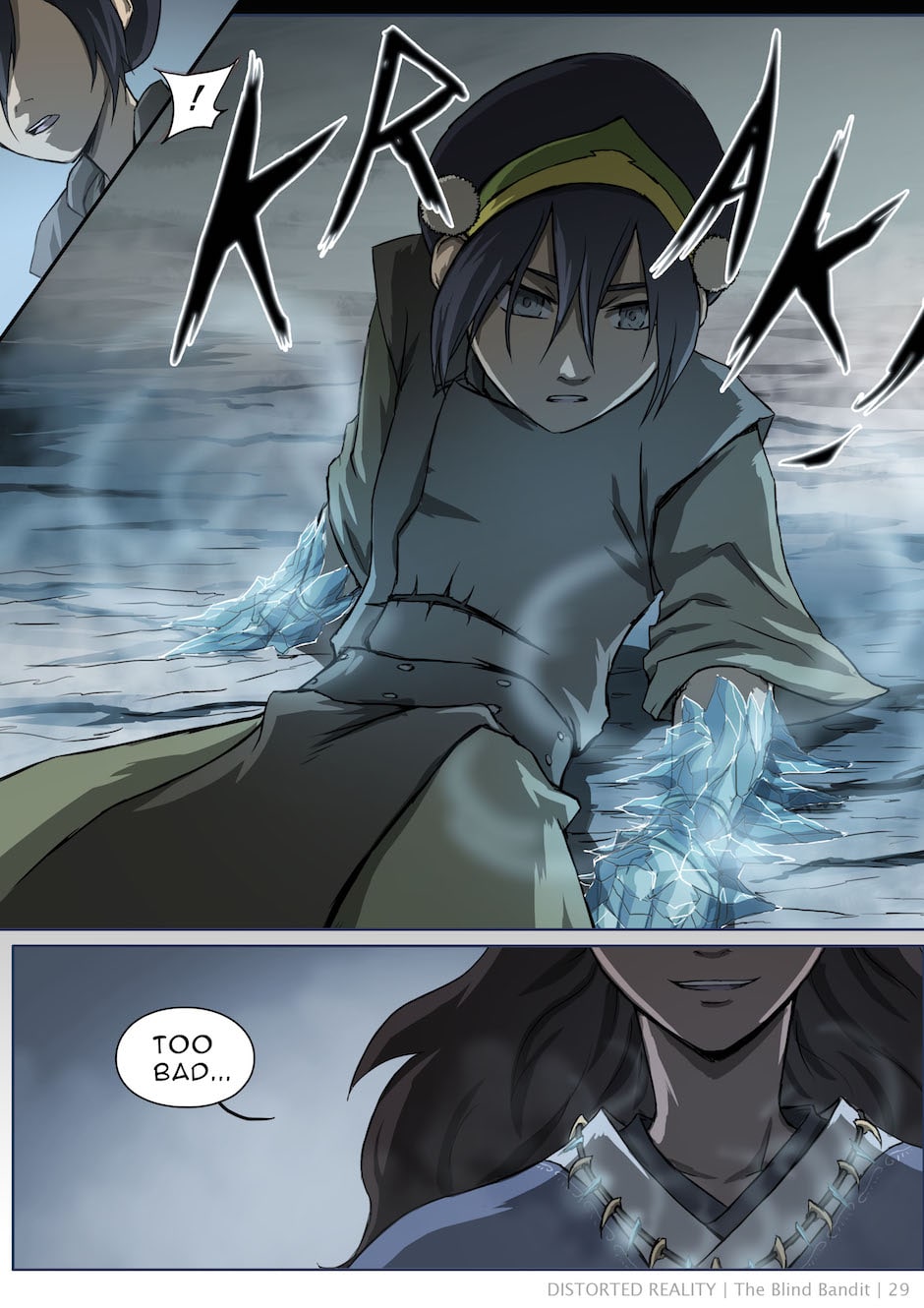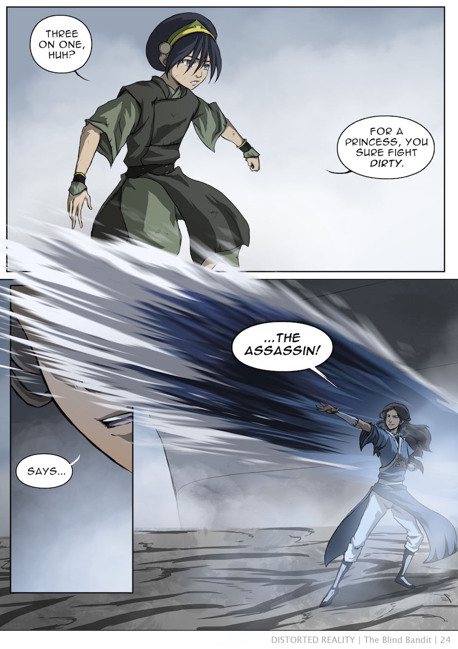 A few scattered scenes adapted into comic form from Baithin's Avatar fanfiction, Distorted Reality. For the full story, check out the original fanfic: https://www.fanfiction.net/s/3952155/1/Distorted-Reality