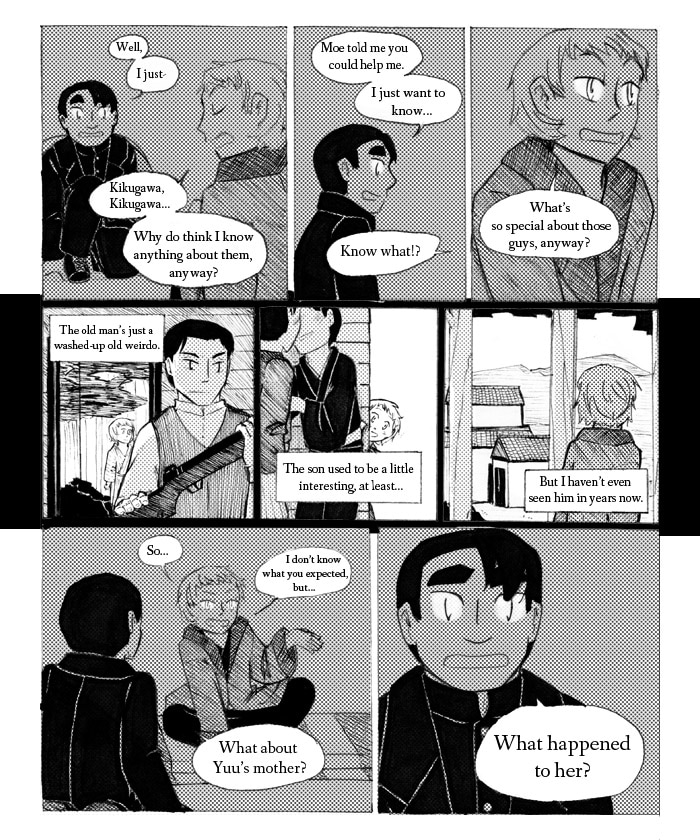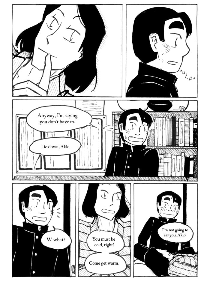 When Akio and his mother move across the country to live with a mysterious acquaintance, it's a change. When they learn that the man's wife is dead and his son hasn't left the house in years, it's a shock. When the son starts letting Akio in on the rest of the family's secrets, things really start to get weird. It's going to be a long winter.