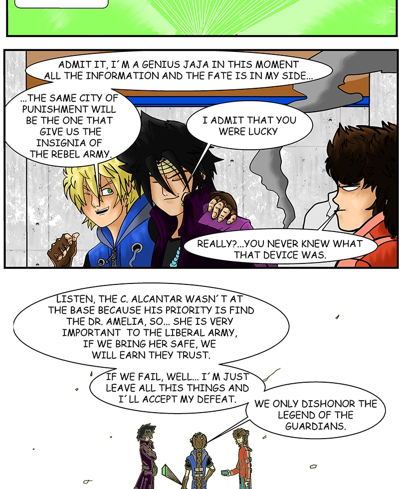 Graphic narrative that combines elements of the comic and manga. In this story there is a revolutionary war and that for different ideals, will change the destiny of a nation. The government will try to eliminate any rebellion, but three young people with legendary artifacts will be important so that this does not happen.