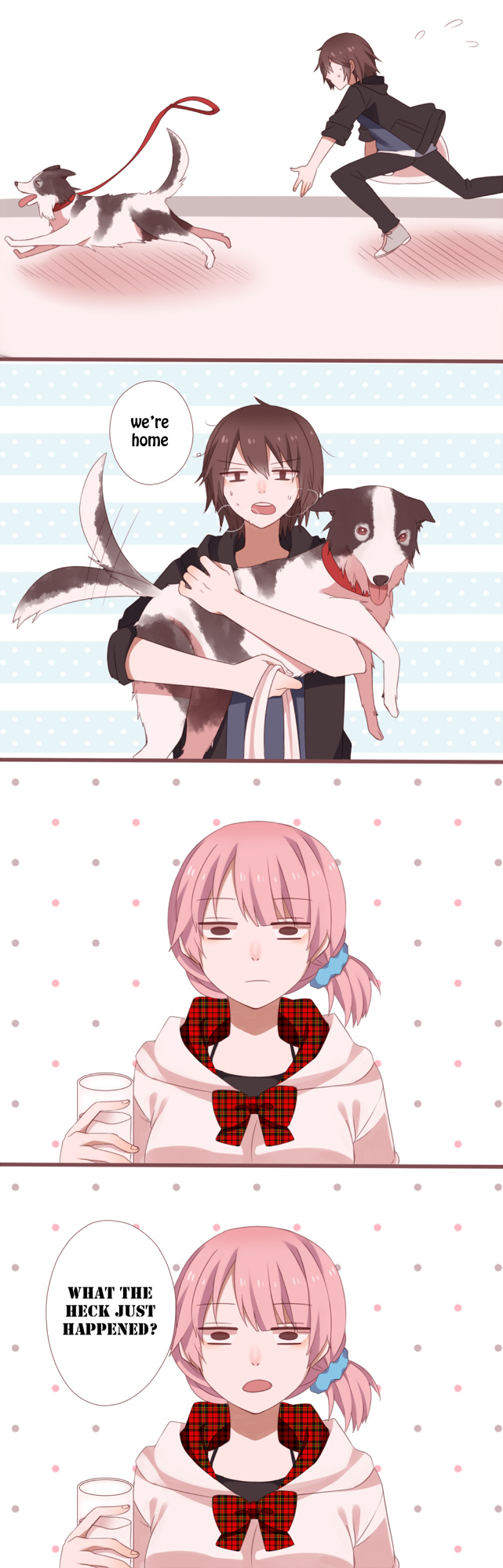 (something similair happend to me) my dog walked in the shop and just sat down right beside me as i was paying i turned around and saw she wasn't outside i panicked till another customer came in and pointed to my dog at my feet and said "is that your dog? i didn't think dogs were allowed in here?" i replied relieved and happy "YES and they aren't" then i just walked out with my dog following close behind me