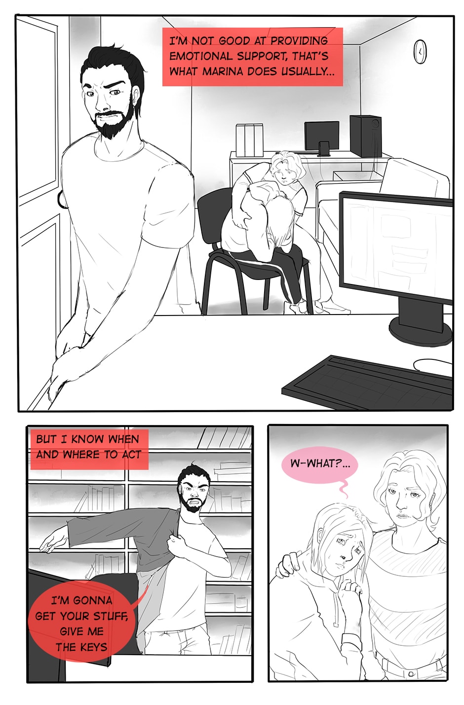 This comic is a series of vignettes about Dima (33M bi), who works full time at the charity that helps people with HIV in Saint-Petersburg, and the people around him (assorted ages, genders and sexualities). This is my place to process the things that worry me in modern-day Russia and world. Be ready for dark themes, overthinking, lack of solutions and a flawed protagonist.