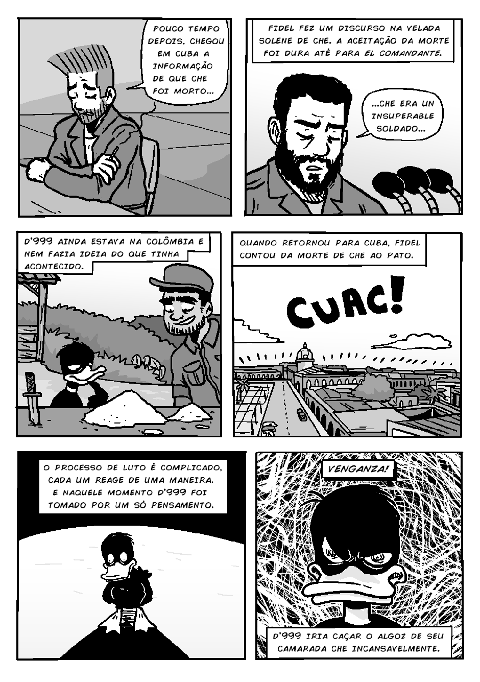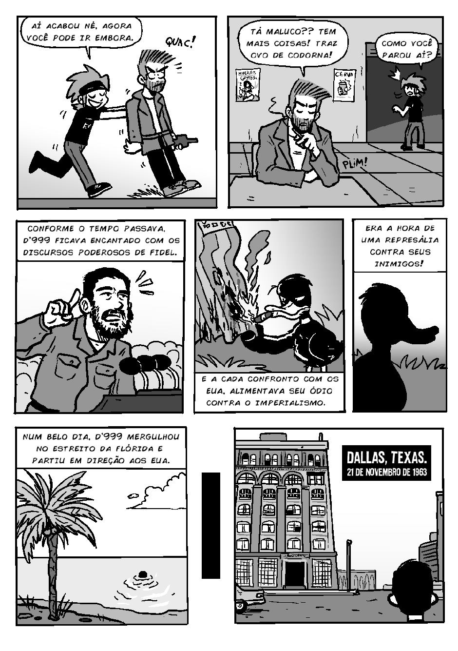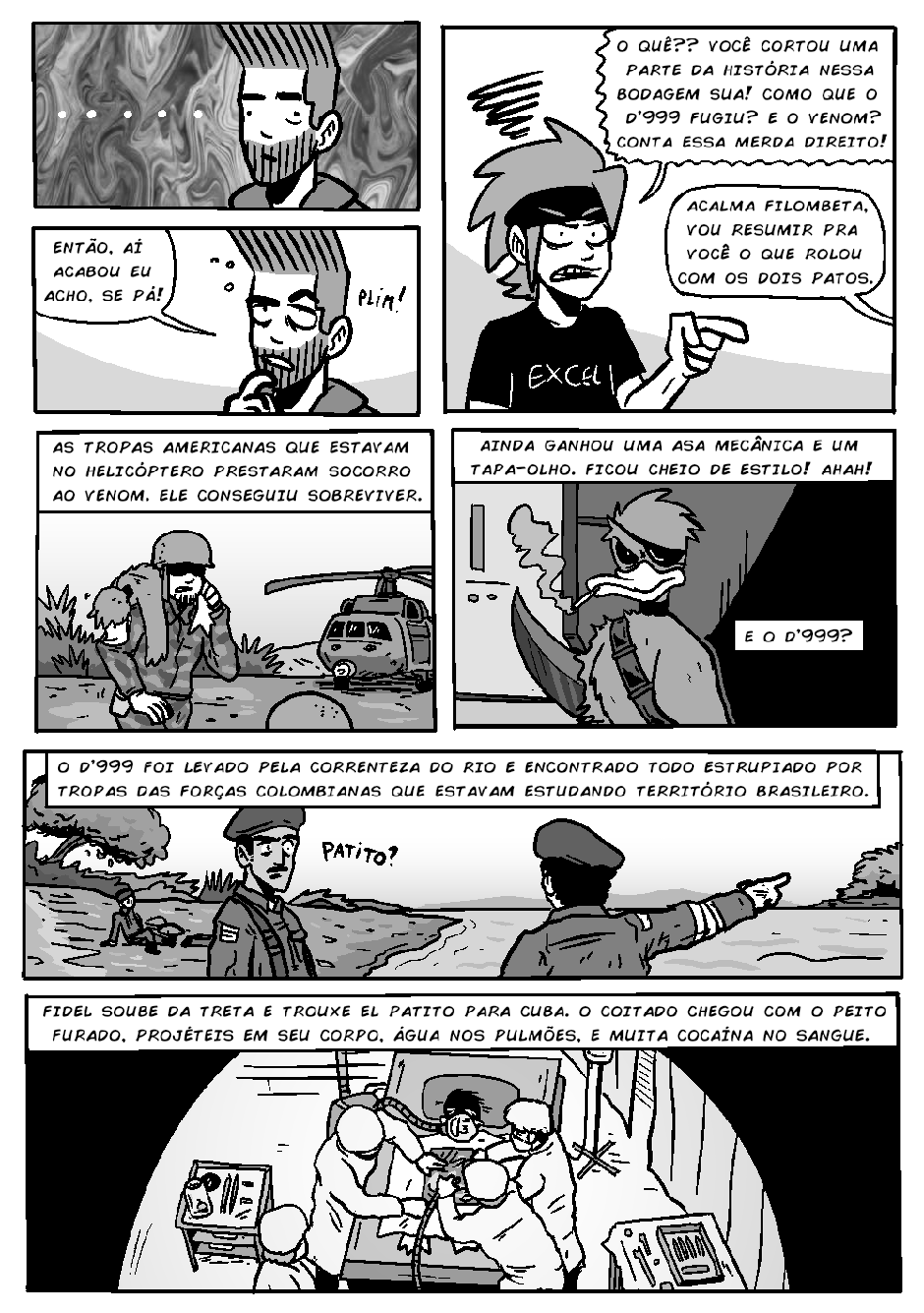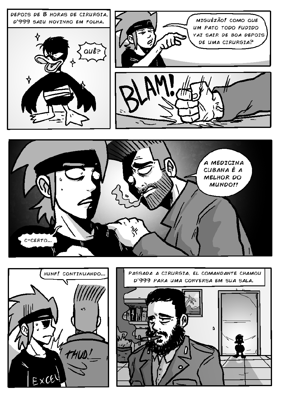 Novamente, o bêbado local (e detetive) Gunther inferniza Celsin com outra história mirabolante do Projeto PATOS, dessa vez com o protagonismo do revolucionário pato cubano D'999.