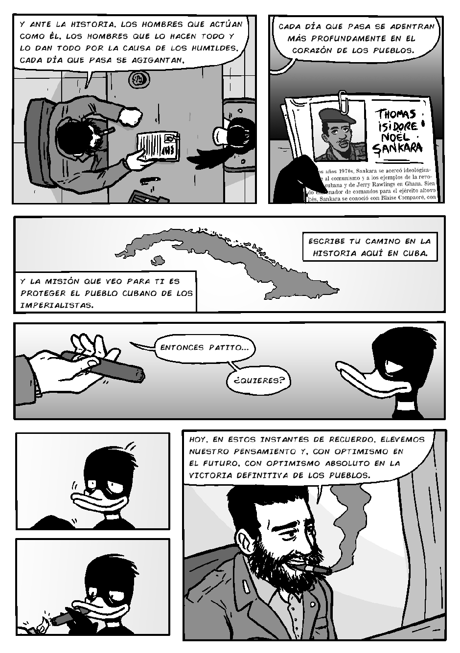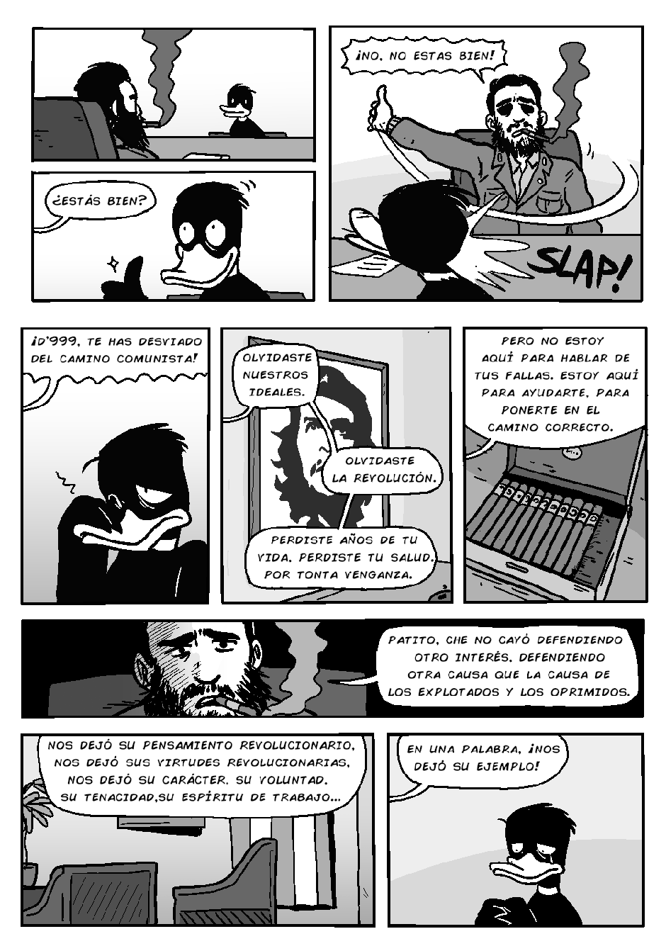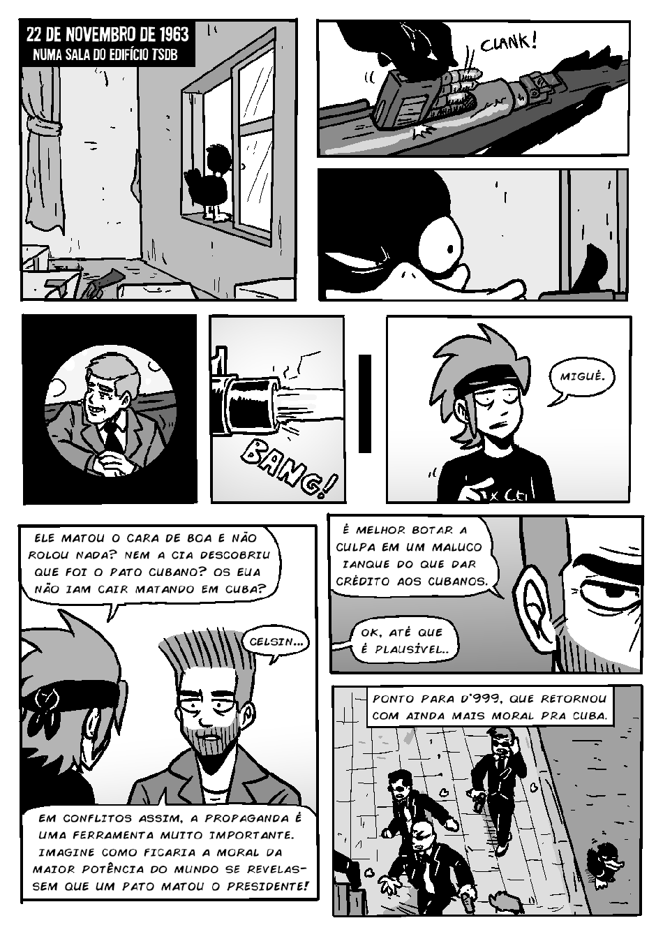 Novamente, o bêbado local (e detetive) Gunther inferniza Celsin com outra história mirabolante do Projeto PATOS, dessa vez com o protagonismo do revolucionário pato cubano D'999.