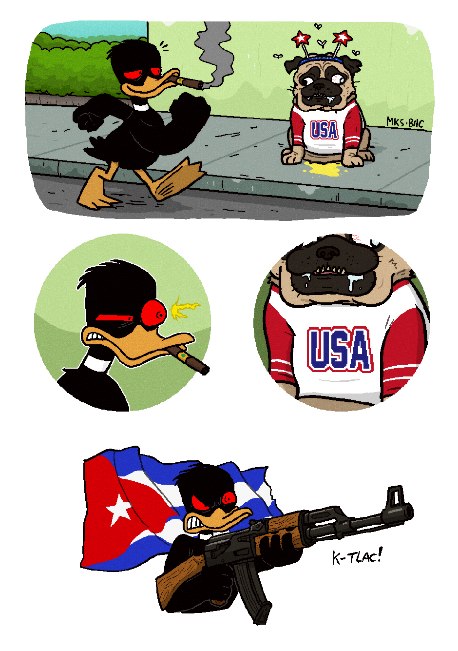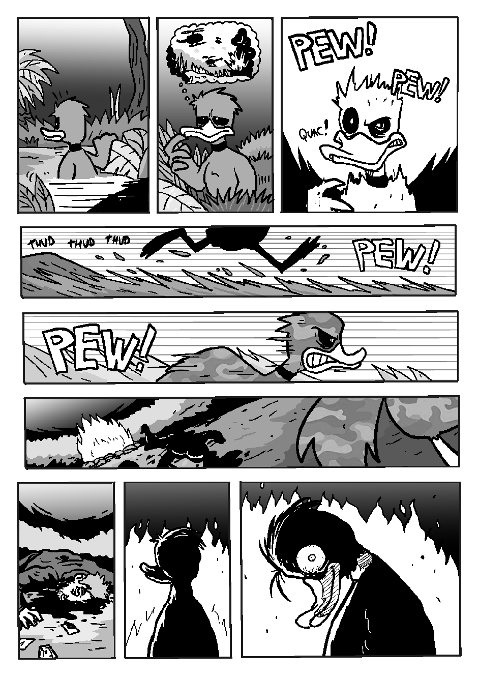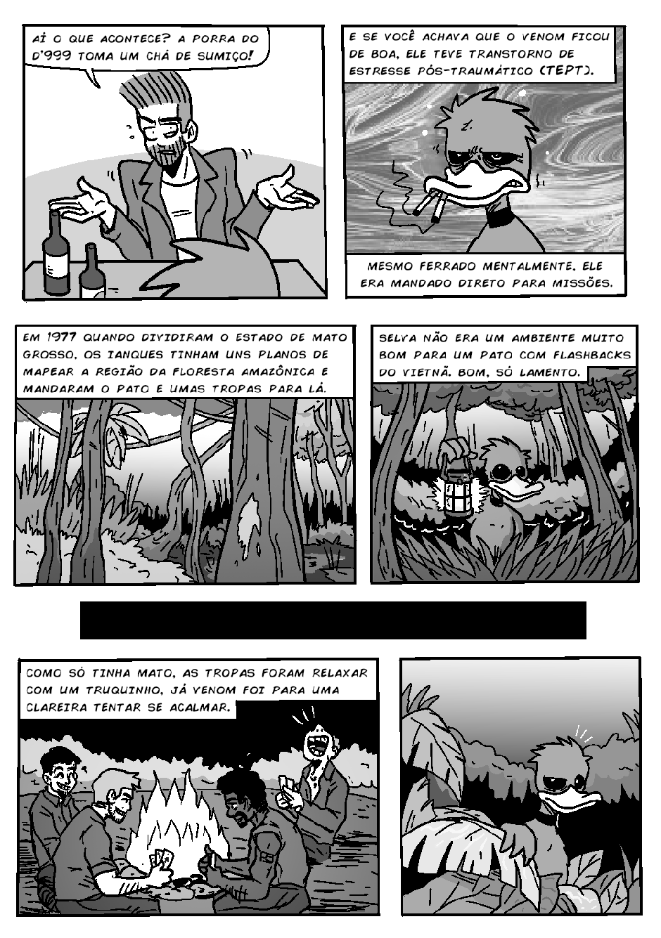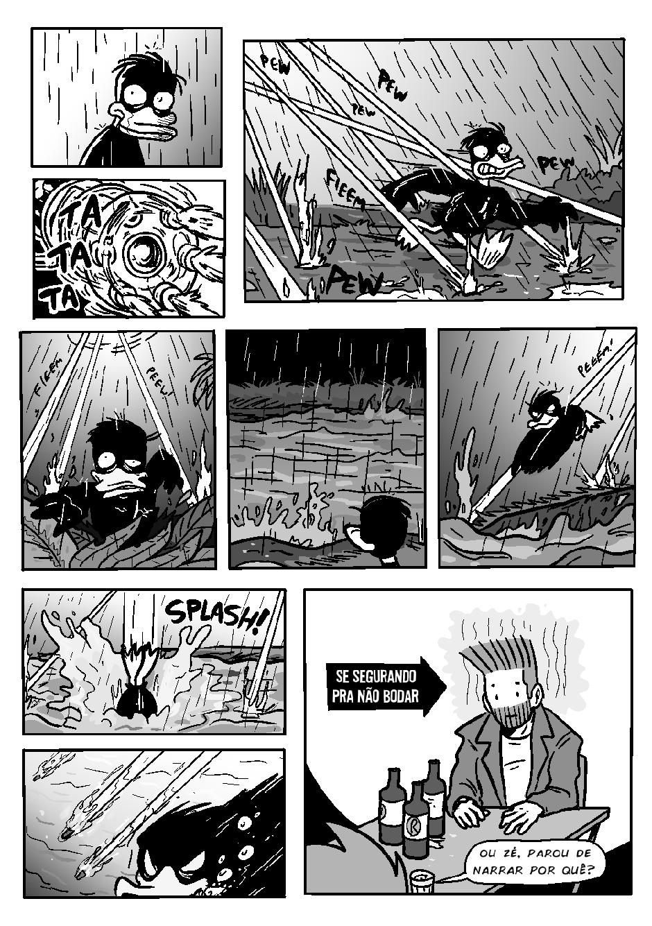 Novamente, o bêbado local (e detetive) Gunther inferniza Celsin com outra história mirabolante do Projeto PATOS, dessa vez com o protagonismo do revolucionário pato cubano D'999.