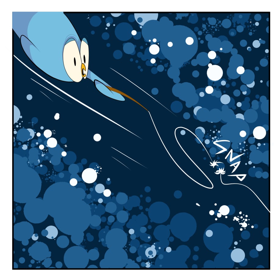 Wondrous and kindhearted, this curious blue penguin, will often get lost in a book ,drawing or his own imagination. From intergalactic space battles to underwater discoveries to soaring escapades in the sky. Each day is a new adventure for this unknowing hero.