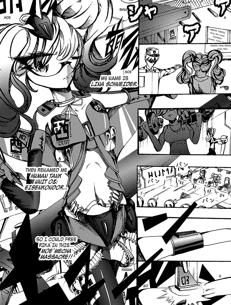 Lovers Lina Schneider and Rika Watanabe find themselves separated on opposite sides of the border as their country splits in two. Upon learning that Rika might be suffering from a tyrannical government on the other side of the country, Lina enlists in the military in a bid to free her. Rejecting her humanity to become a living weapon with enough firepower to level a city, she soon finds out she's not the only one of her kind... [Updates every other day]