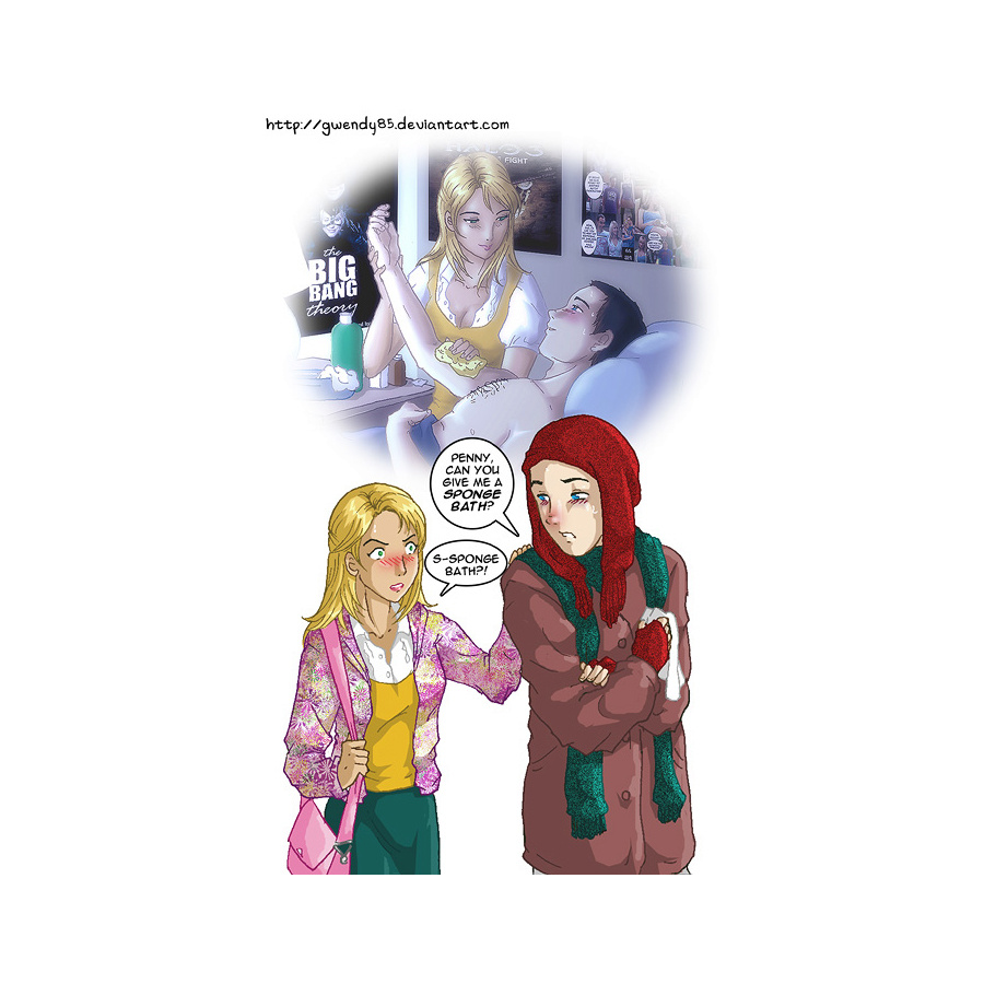 Description: Some of you may remember me saying in the previews that one of the artworks will be somewhat similar to my 'Skinny Dippin' series (see my Big Bang Theory gallery). The reason why? It's because after doing a recap of Season 1, I realized the 'skinny dippin' invitation wasn't Sheldon's first sexual invitation to Penny! It was this, in 'The Pancake Batter Anomaly', the very first TBBT episode I had ever seen! I had to change the quotes though, since the actual quote from the series might imply that the imagined image above is Sheldon's mother. My personal favorite part of the above image is Sheldon's red shiny nose. I enjoyed coloring that haha!