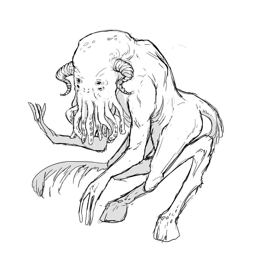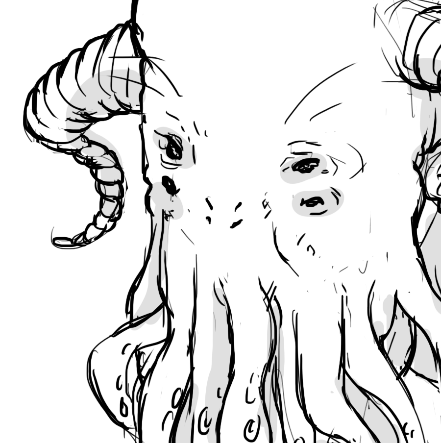 In my horns and my hooves I take pride Everyone envies my thick and pink hide But even so often I would be told That tentacle beard makes me look old Just a practice sketch and some bad poetry lol Enjoy~!