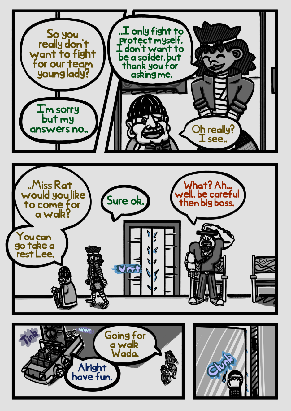 I like the dialog being in different colors. Lets me know who is speaking.