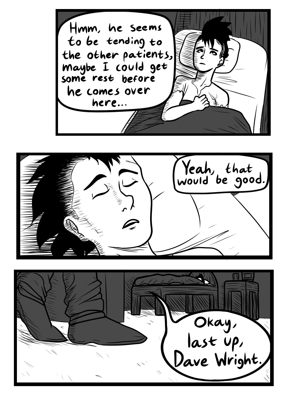Meet Dave, a patient currently battling the black death, who is about to have a very interesting day...
