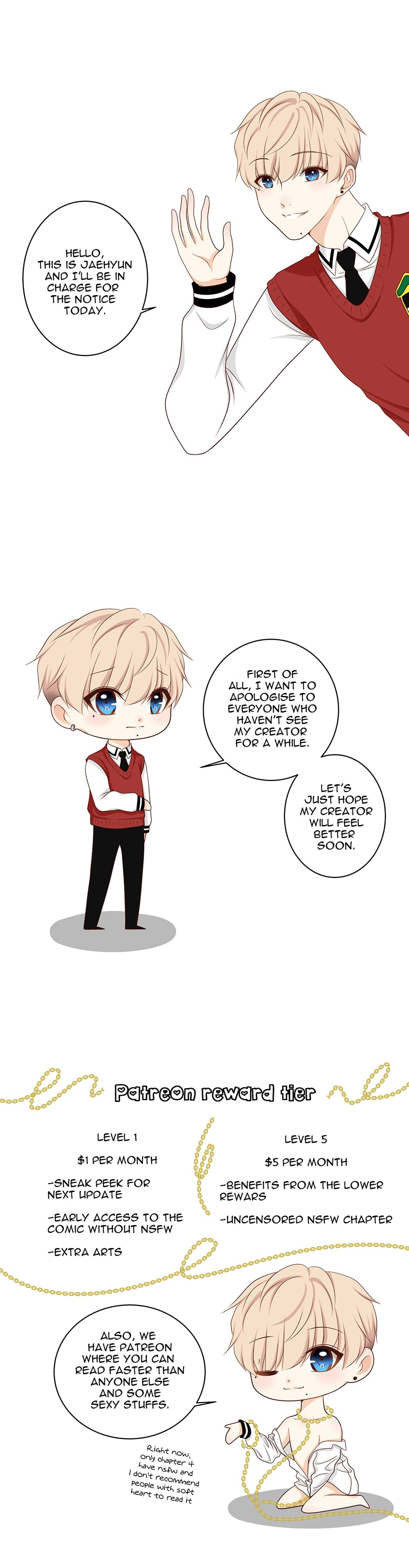 Vernon is living a new life oblivious to his past, after losing his memory four years ago in an accident. But things change when he decides to foster a little black cat who turns out to be a "cat boy" instead. The mysterious arrival of this cat boy into Vernon's life will bring back some unwanted memories. Will Vernon still be the same? What are the dark mysteries of his past and who is this strange man he keeps seeing in his memories? This is a rework of the old version with some new twists.