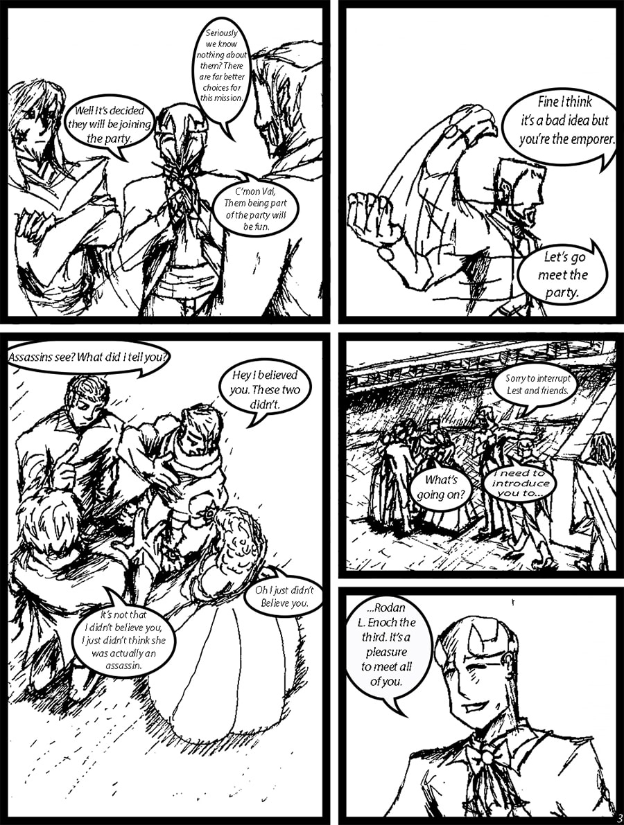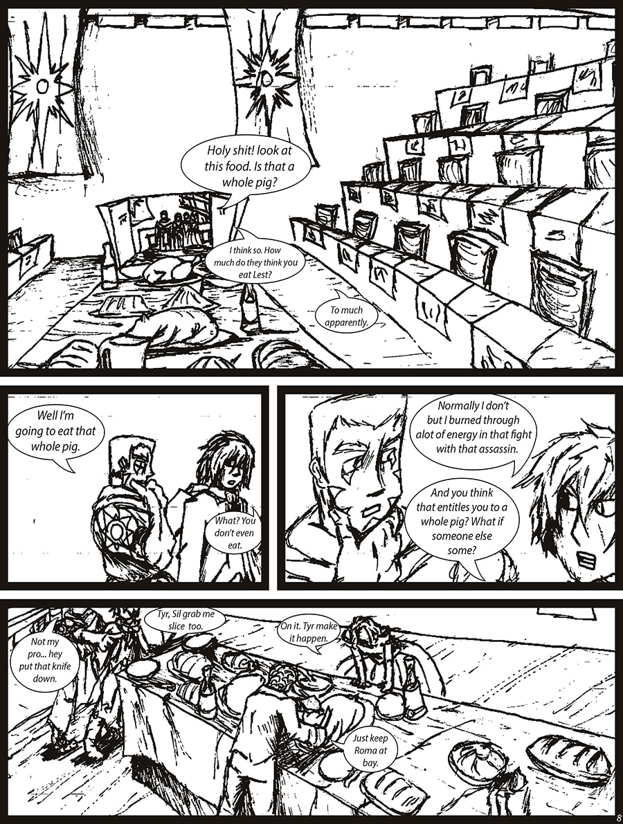 After an attempt on the Emperor’s life, Lest and his friend are invited to dine with the Emperor, Arch-Mage, and Arcane General.