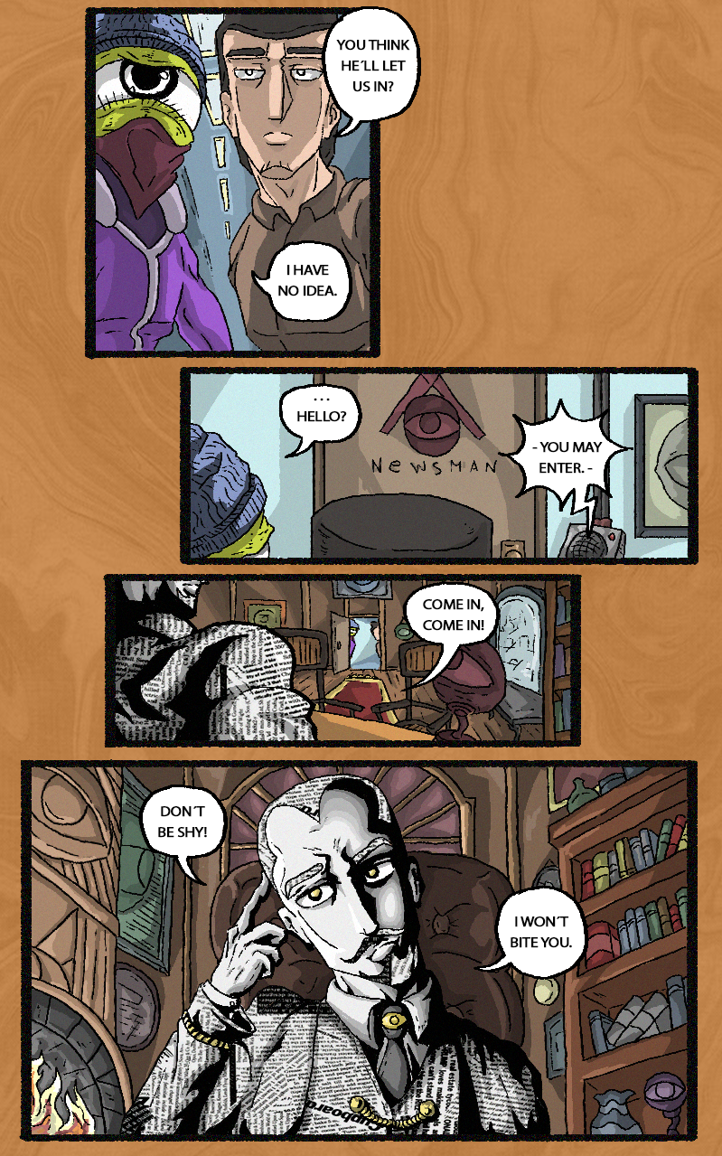 LOVED the Newsman's design!!!! You're perspective art warps so elegantly, I loved when the were walking up to the office.