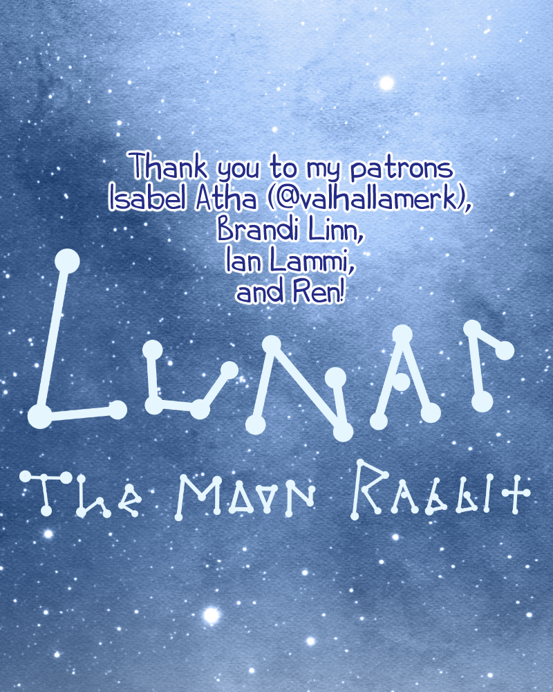 When Lunar, the only Moon Rabbit, finds herself adrift and alone in space, she looks for a planet to land on and gather her memories. Her eyes land on a small water-covered one, with white fluffy clouds around it and a few green spots on its surface.