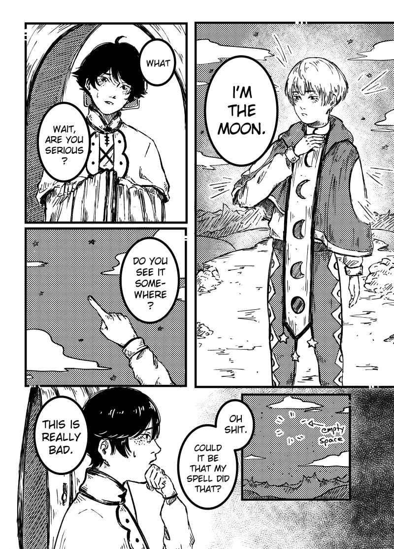 Nao, a young wizard and the last of his kind, practices hard to get better and make his dream come true. Just as the young wizard thought he made it, he fucked up. Nao accidentally summoned the moon down to earth and now has to deal with the consequences. Will he be able to send the moon back? Well, read the damn manga if you want do know!