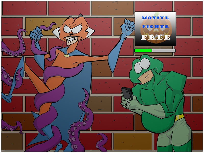 Will Fox ever escape the deadly grip of the squid monster? Will Frog leave a bad review for the Monstr Fightr App? Until next time Veracious Devotees! Same Fox Time! Same Frog Website!