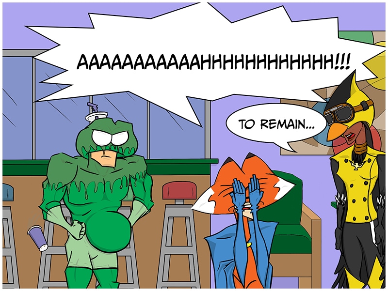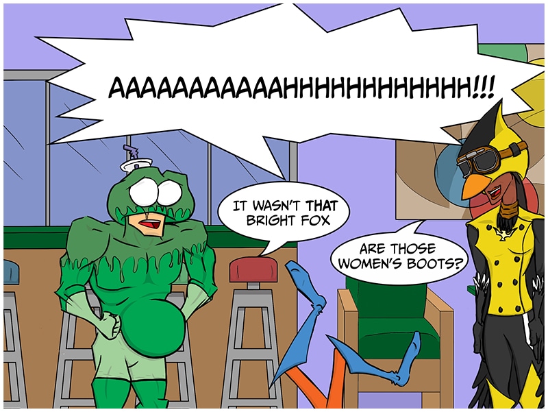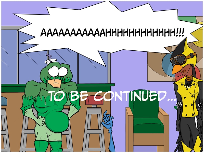 Will Fox Regain his sight? Will Frog ever get the caramel syrup out of his costume? Who is this Femme Fatale? Find out next time Veracious Devotees! Same Fox Time! Same Frog Website! Thank you again to everyone who has helped make this passion project! From those who just give my strip a chance, to the patrons, all of you have helped me make a dream I have had since I was a kid come true.