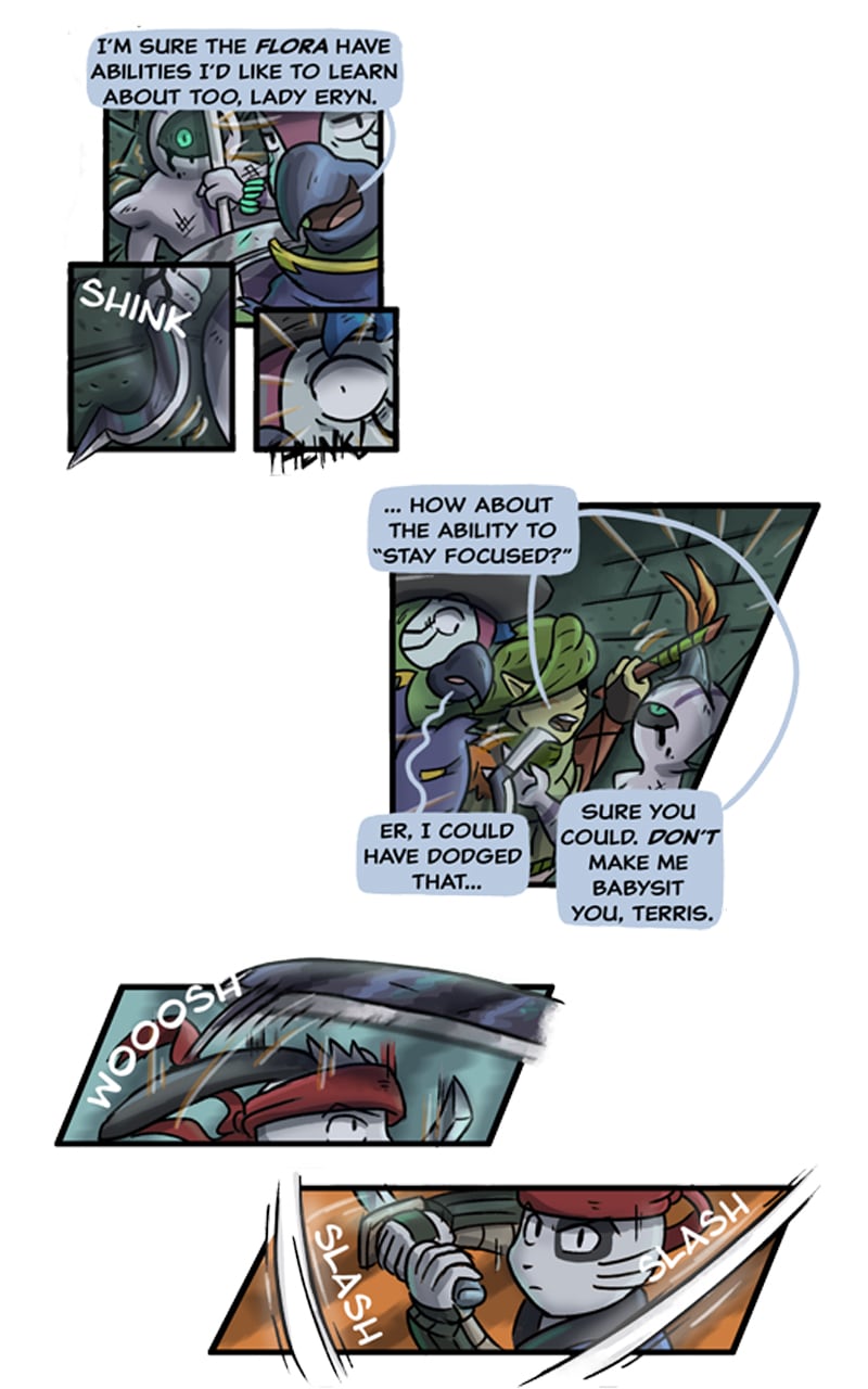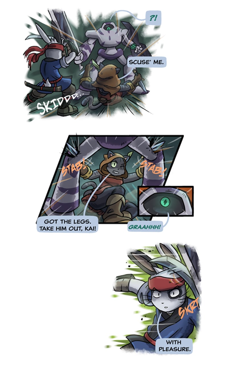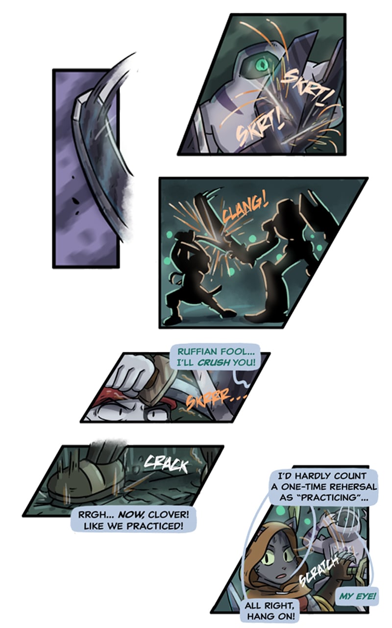 The action scenes in this part were a joy to sketch out. I'm trying to make them more and more dynamic by experimenting with new layouts and panel shapes.