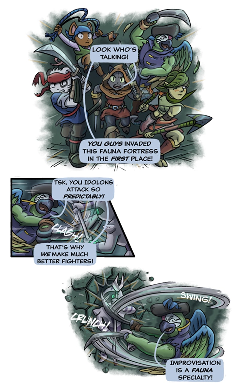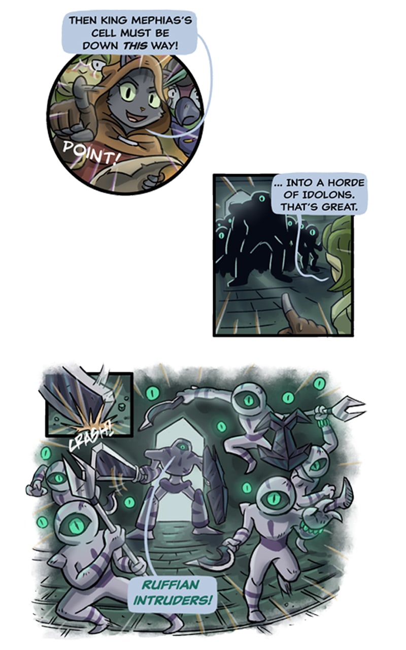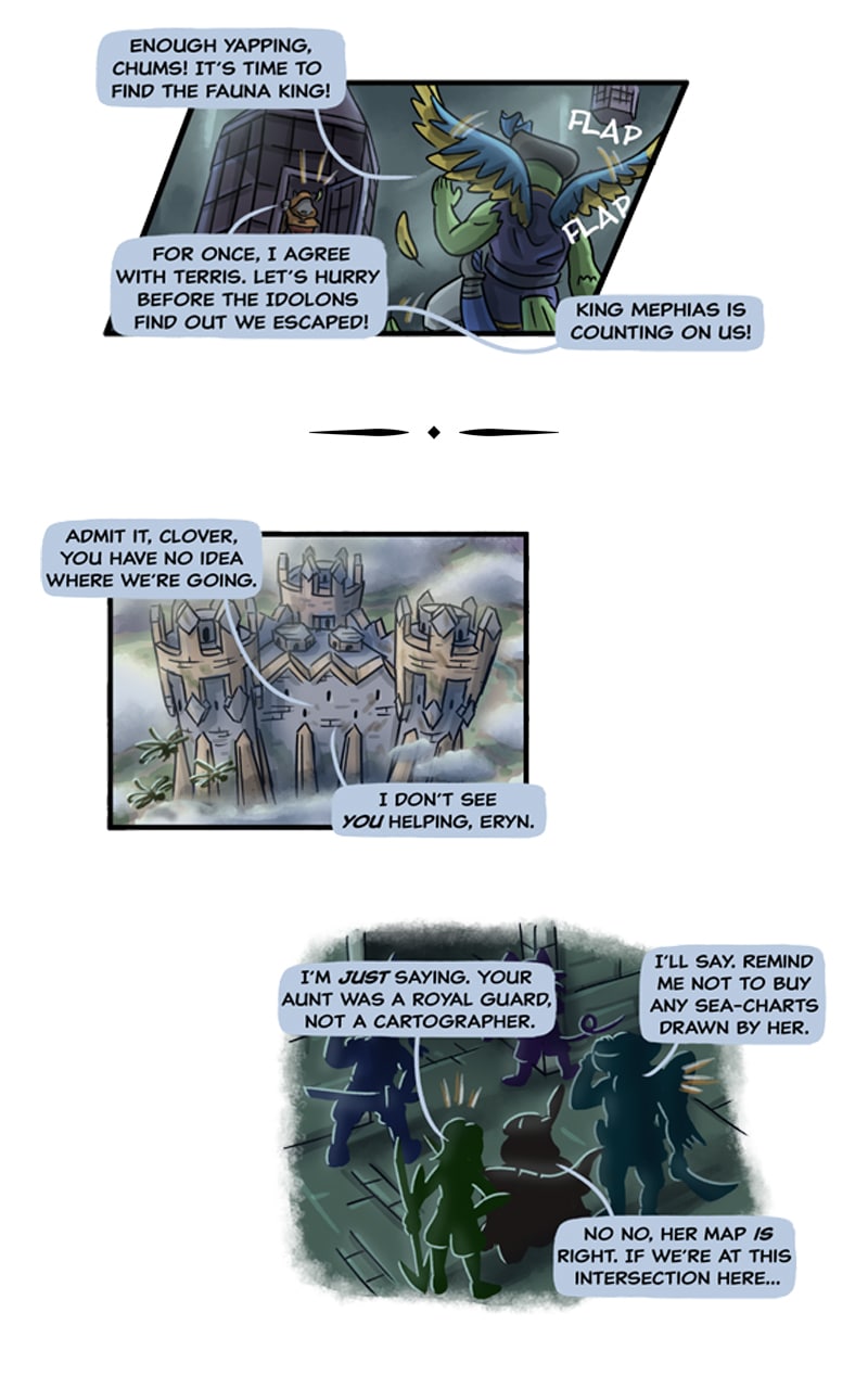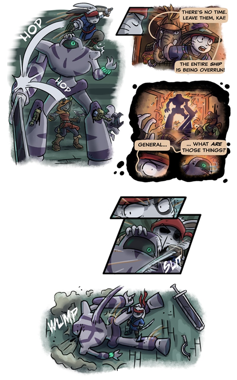 The action scenes in this part were a joy to sketch out. I'm trying to make them more and more dynamic by experimenting with new layouts and panel shapes.