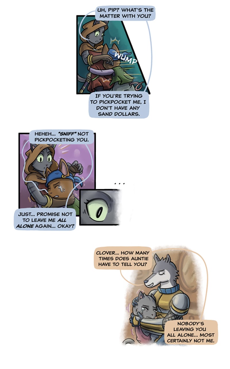 Aww Pip's reunion with Clover is so sweet and wow these fighting scenes are getting more intense and detailed! lolz at Kai and his bean juice. Oh man it's Nimbus without his cloak!!! So cool!