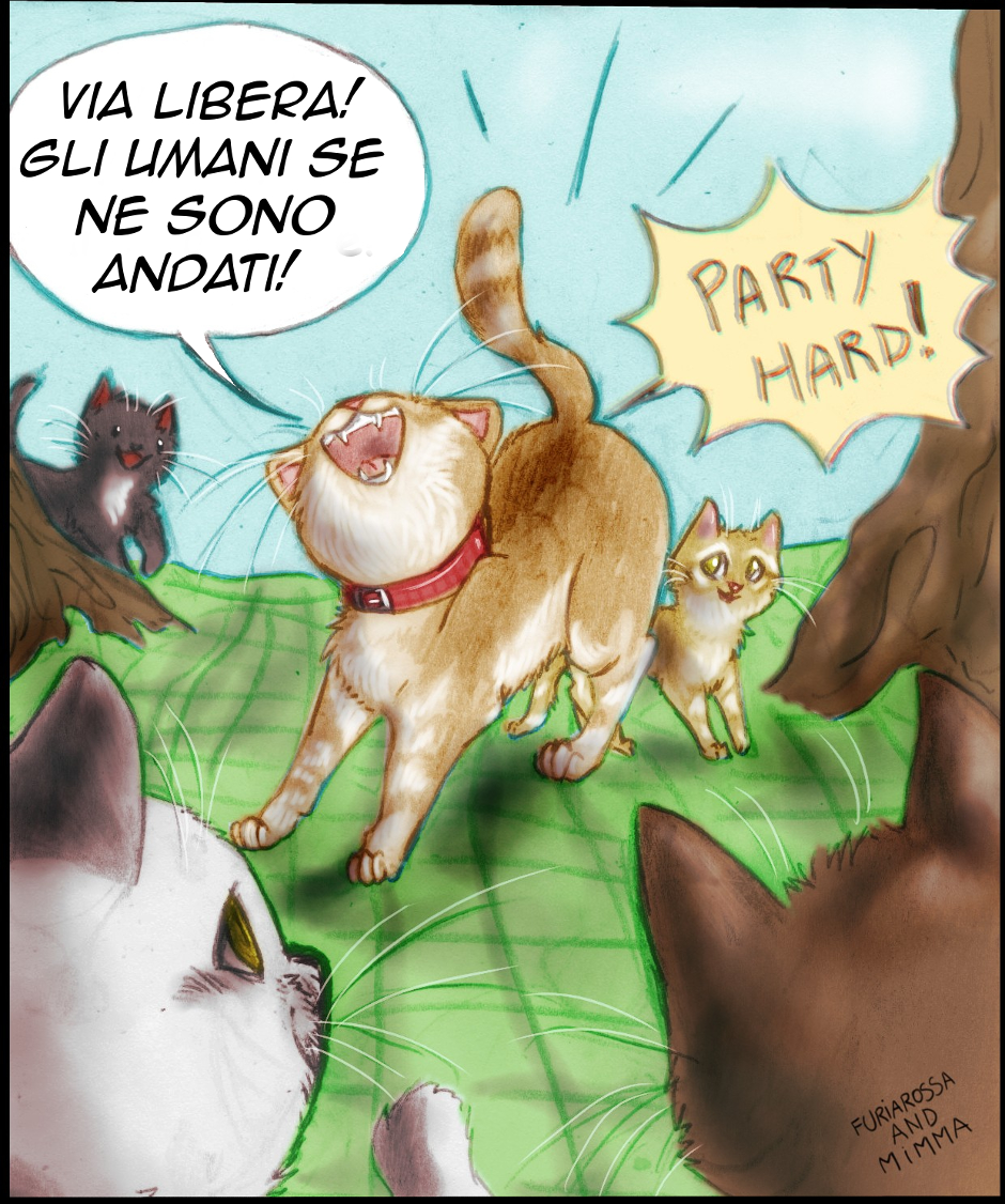 Quando siamo con Lily, lei è un gatto dolce e relativamente calmo. Ma c'è una sola spiegazione a quel fenomeno per cui quando torniamo lei è sempre in compagnia di un sacco di gatti sconosciuti (e di solito maschi, perché le femmine non le può vedere): quando non siamo lì, lei organizza party selvaggi.
