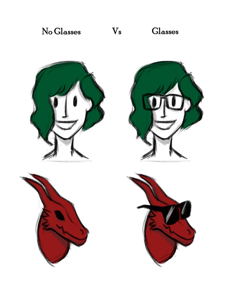 Hellooo! I was able to get a bit of time away from my uni work to do some more designing for this comic. One big inconsistencies I'd had is my glasses. IRL I where them about 70% of the time (Mainly when I'm working and out but not really at home) but I'm not sure if I'm going to keep them in the main character design.