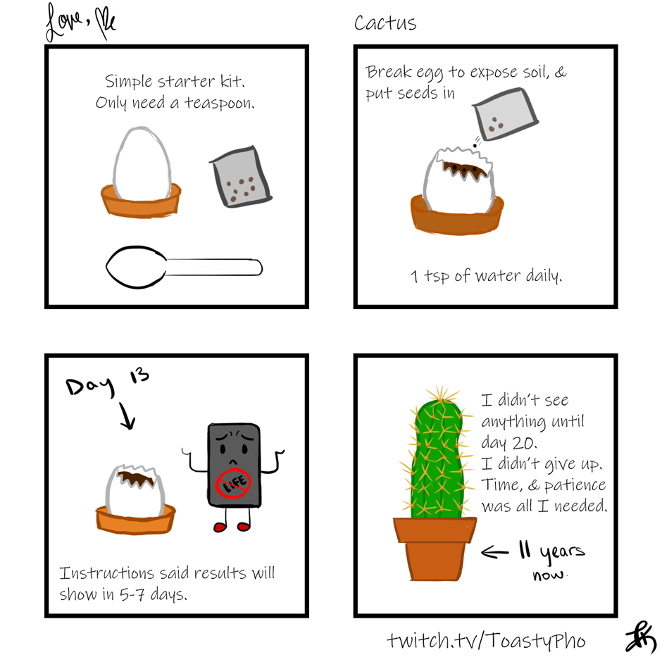 The mindset I had towards my cactus, is something I need to remember to apply towards myself. Things don't change overnight, and sometimes it takes a little longer than usual to see anything. That's okay, everyone grows at their own rate. As long as you never give up.