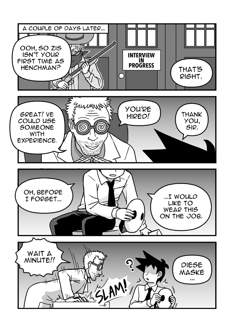 The Masked Henchman will be on a break for a couple of weeks. One reason is that I've run out of buffer pages. Another reason is that my wrist has been giving me problems so I can't draw as much as I would love to. I should be able to post episode 12 on the 15th/16th of August. Hopefully.