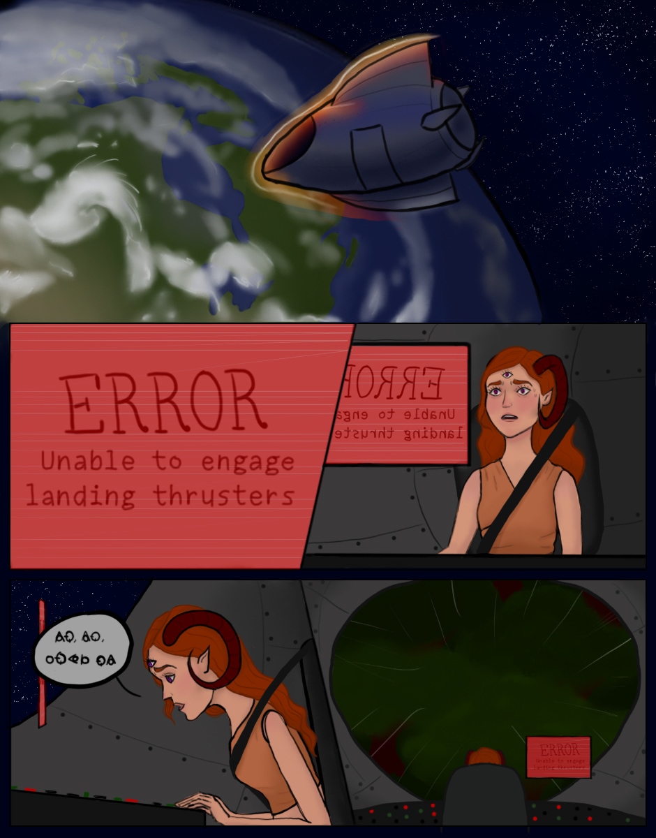 Meet Aislin! She's in a bit of a sticky situation at the moment. PS. Guess who has no idea how to draw a spaceship! Or Earth! Or Hands! Hint: It's me. Anyway, thanks for reading! Leave a like if you liked it! Comment if you've got something to say! Subscribe if you feel like it!