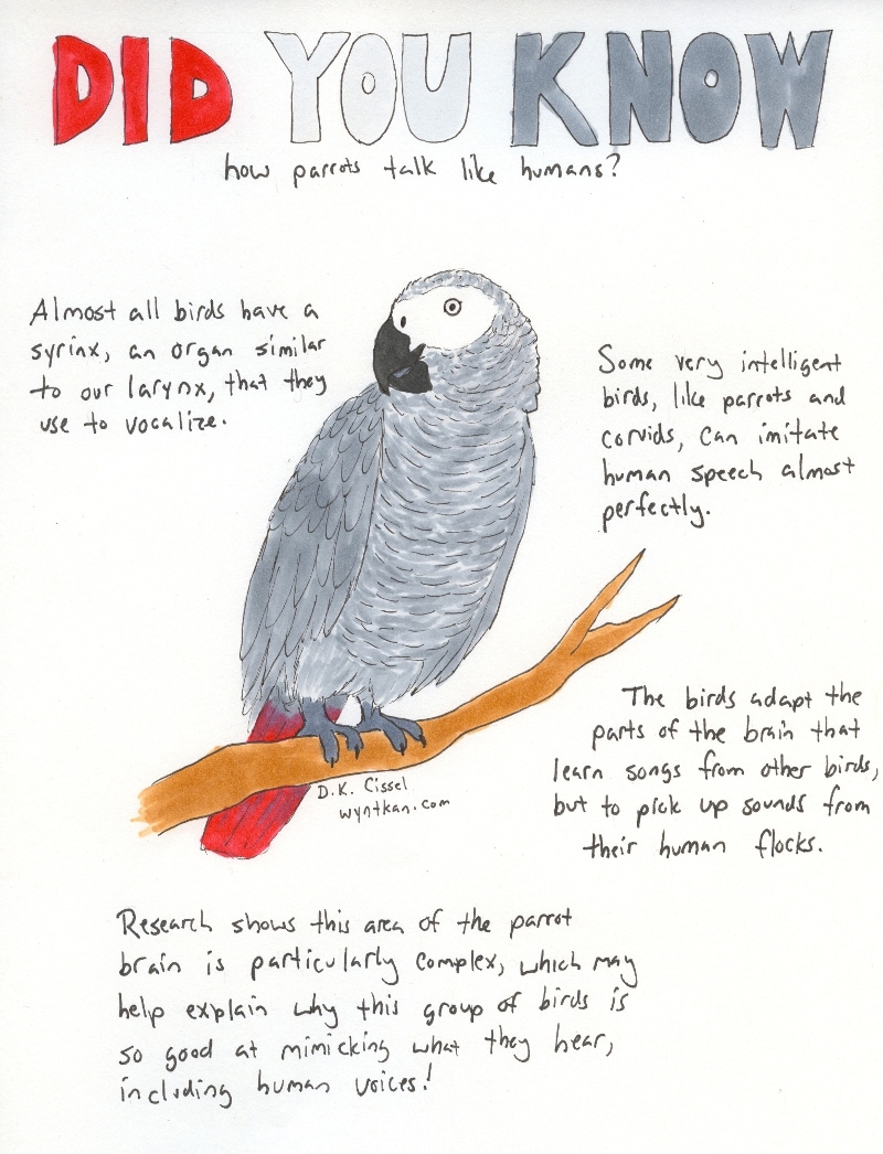 Some members of the corvid, starling, myna and a few other families talk, too! African grey parrot sticker available at http://wyntkan.redbubble.com