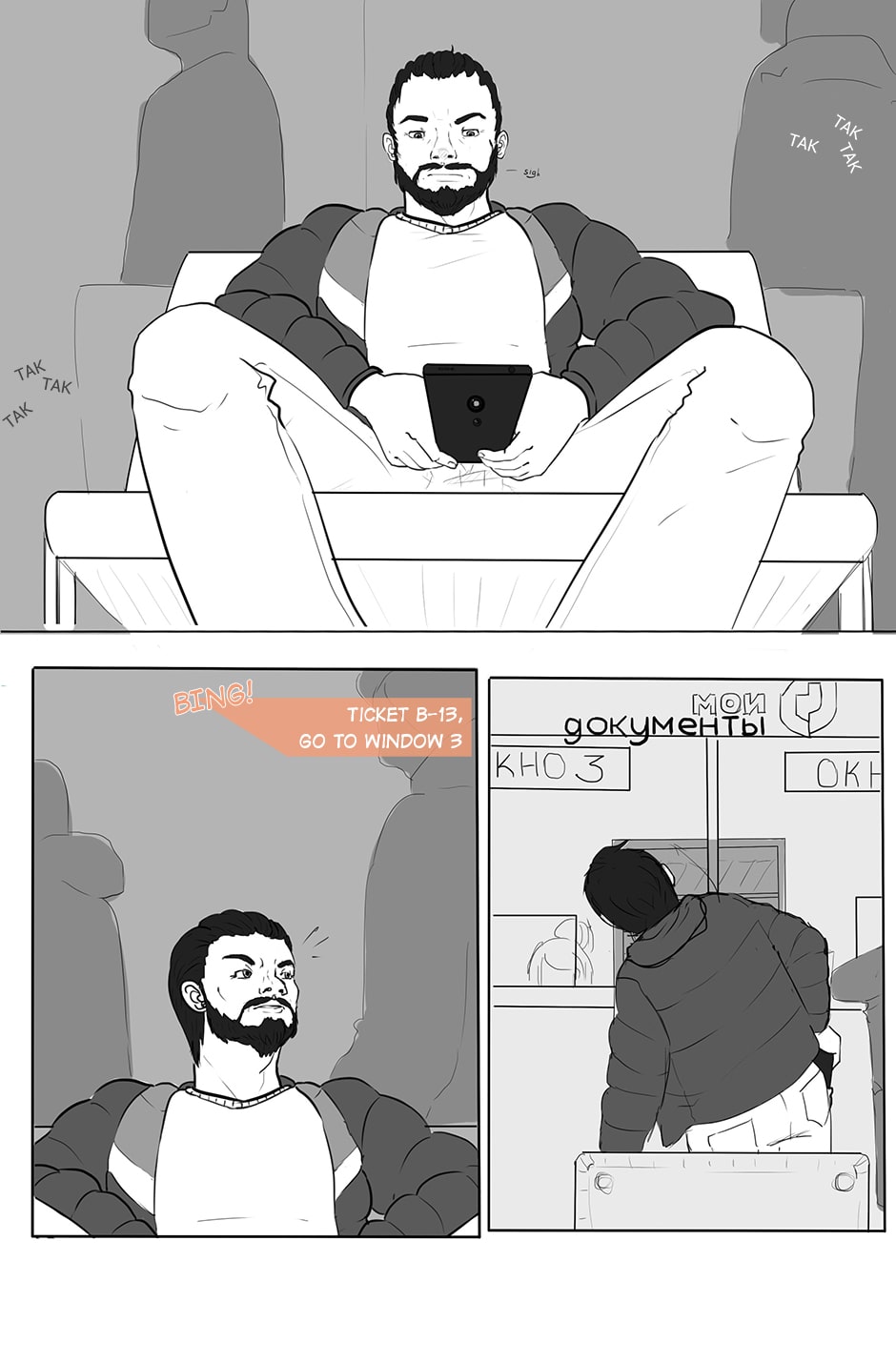 The logo in the last panel is "My documents" - a gov system where you can come over and order and receive all the kinds of papers, documents, write outs and other bureaucratic things.