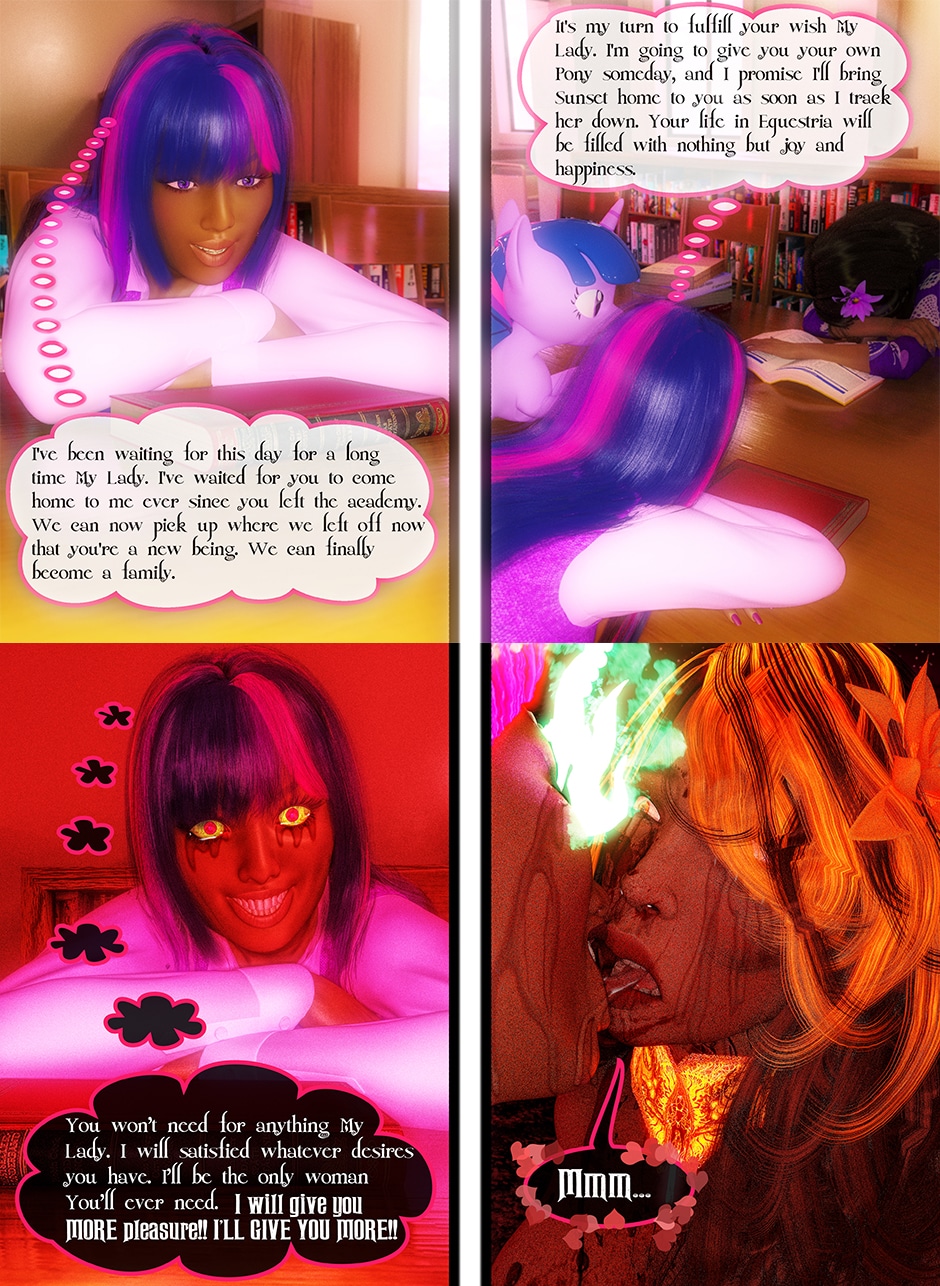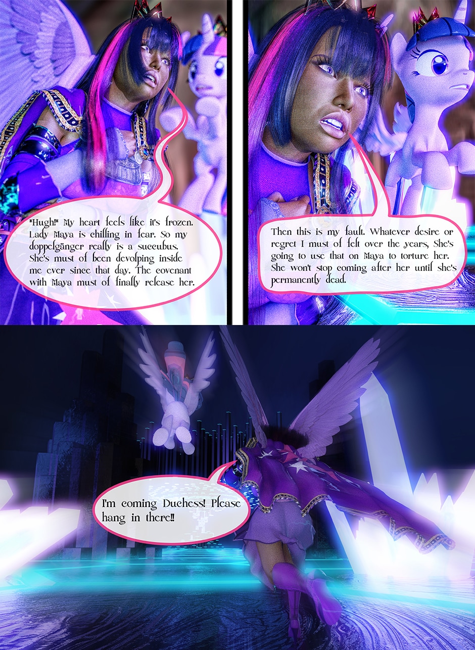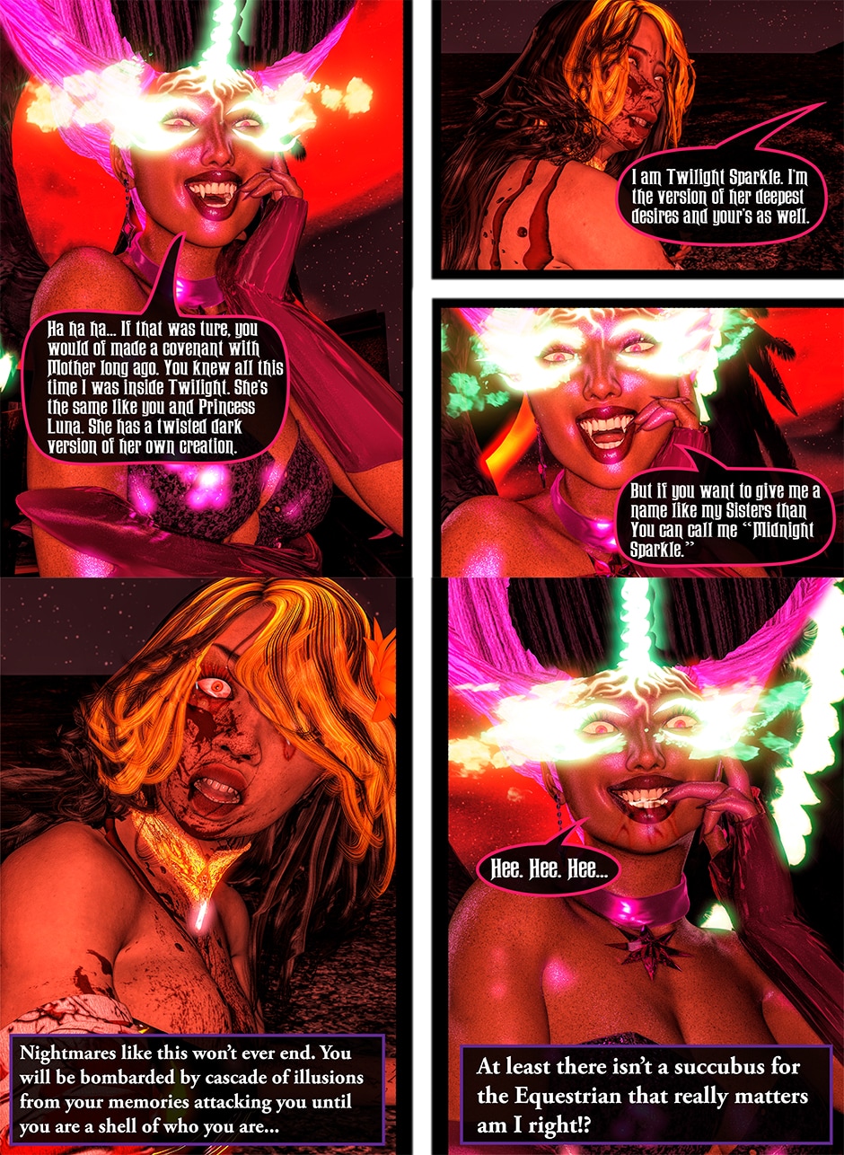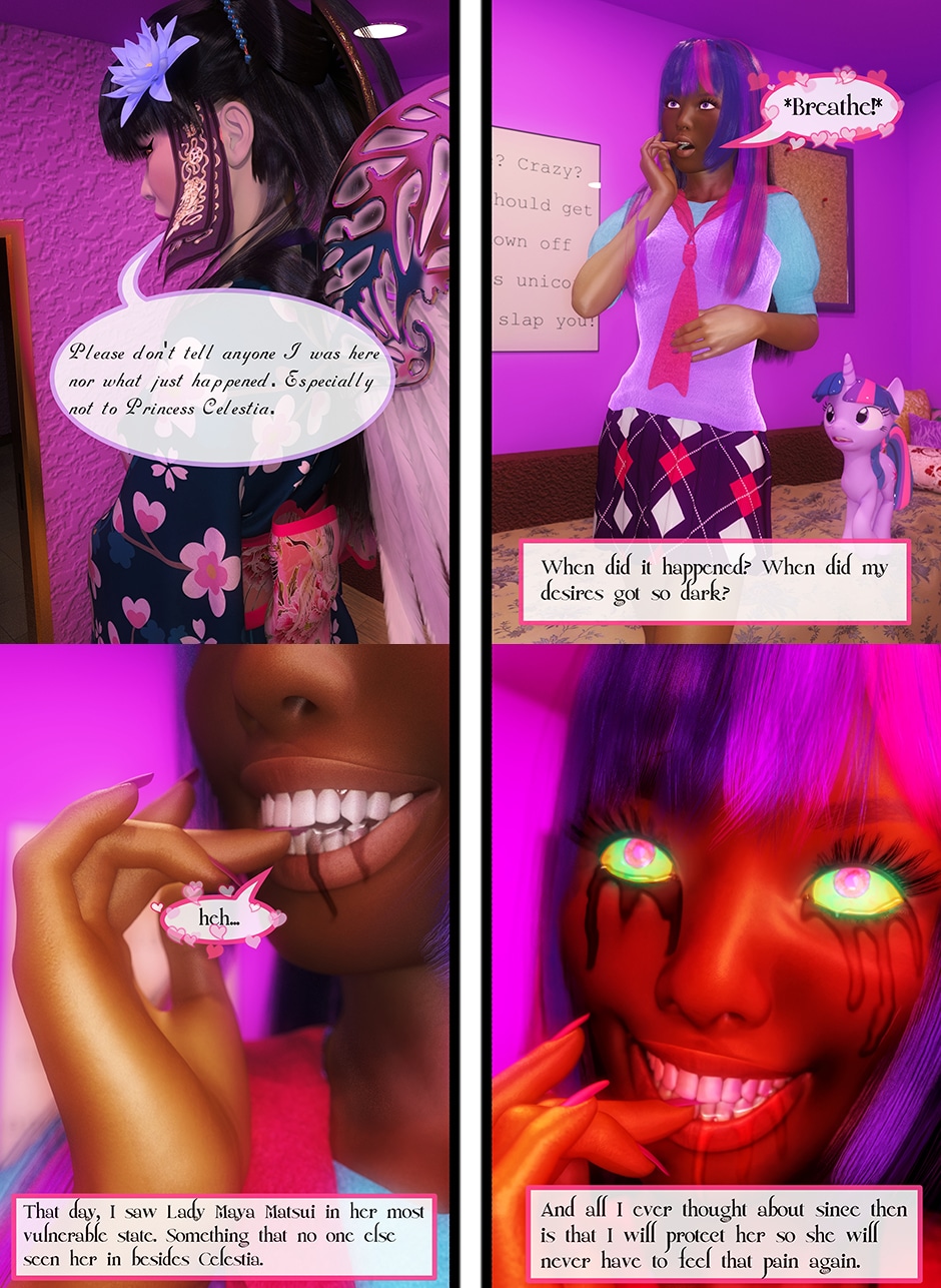 After being tricked and injured by a doppelganger of Twilight Sparkle, Lady Maya Doi is at the mercy of a new succubus who called herself Midnight Sparkle. Midnight begins to torture Maya both physically and psychologically by sharing Twilight's deep secrets that not even Maya knows yet. With Midnight's existence becoming a reality, Maya's mind is on a verge to be in a complete psychosis unless Twilight finds her Succubus and stop her.