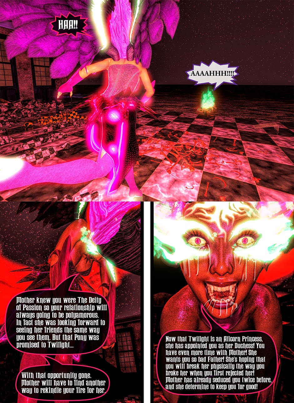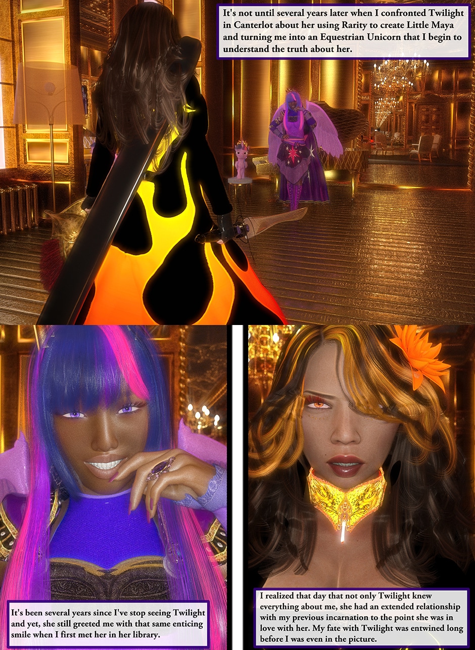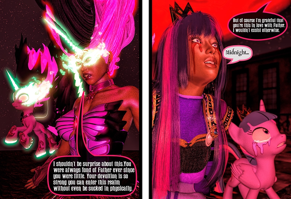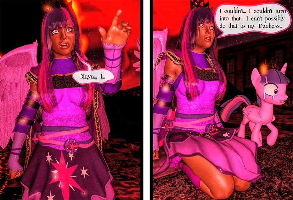 After being tricked and injured by a doppelganger of Twilight Sparkle, Lady Maya Doi is at the mercy of a new succubus who called herself Midnight Sparkle. Midnight begins to torture Maya both physically and psychologically by sharing Twilight's deep secrets that not even Maya knows yet. With Midnight's existence becoming a reality, Maya's mind is on a verge to be in a complete psychosis unless Twilight finds her Succubus and stop her.