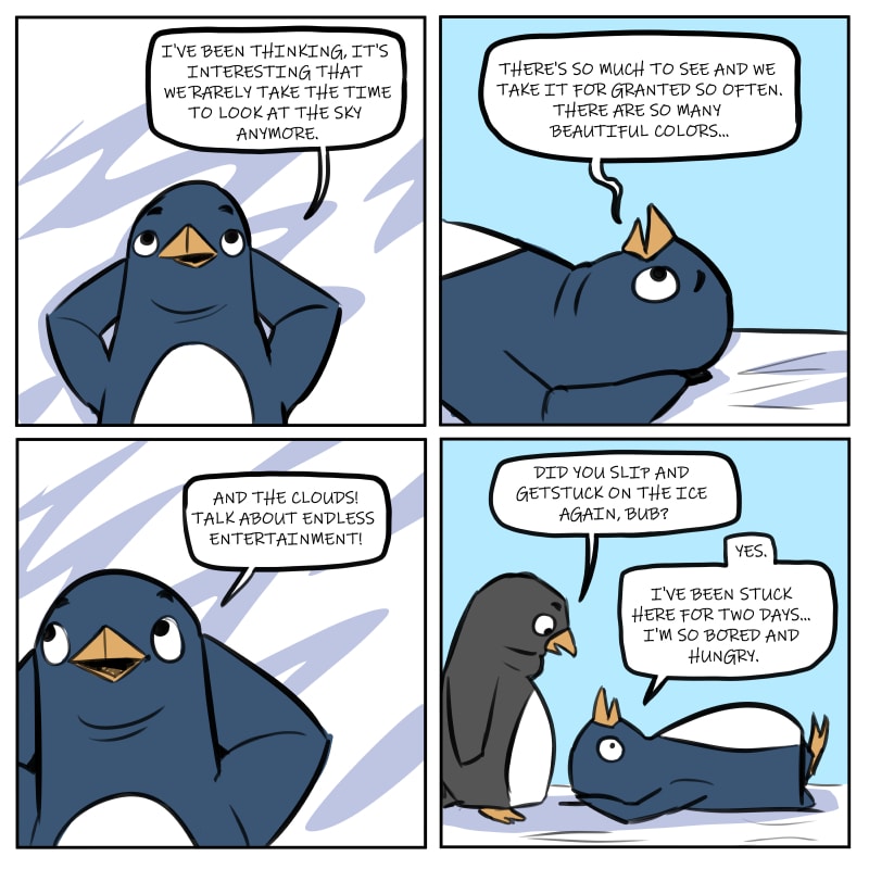A comic strip about what those "cute and cuddly" penguins are REALLY up to. Join an assembly of characters, namely Bub and Schnook and enjoy their daily interactions and experiences.