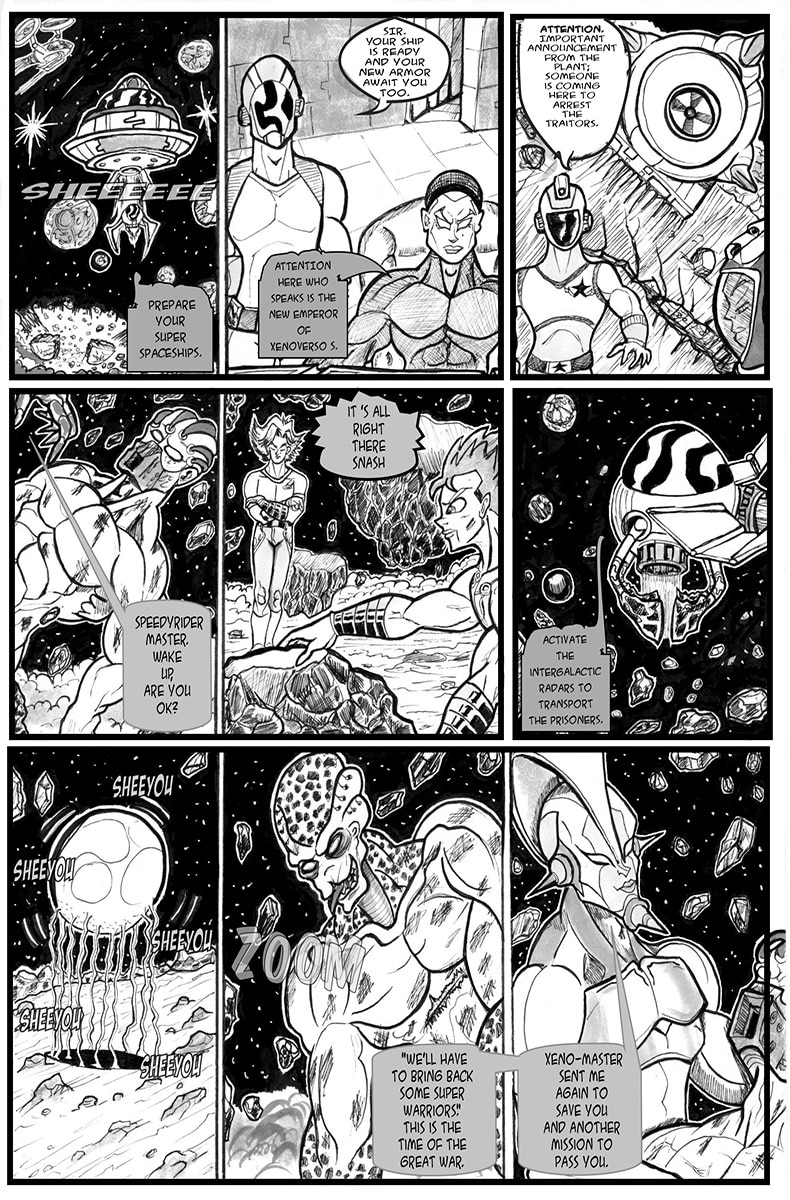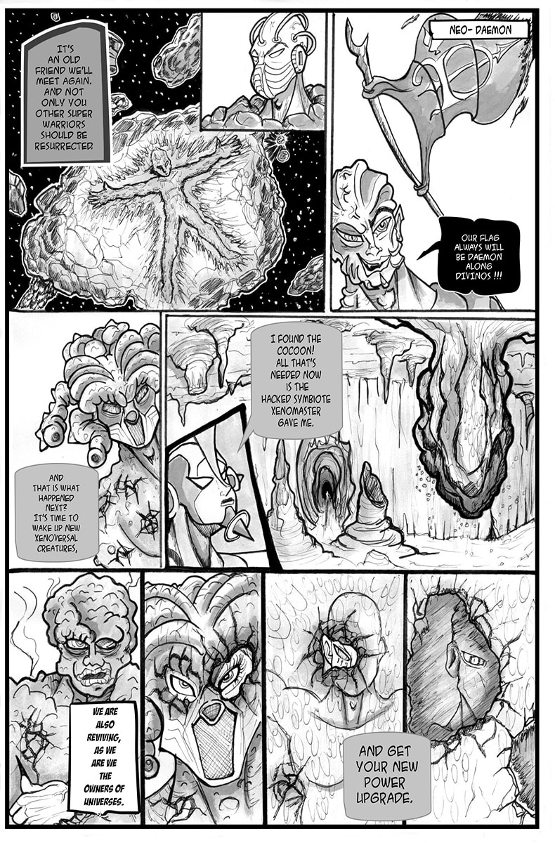 The war for xenoversal domination again haunts peace in the universe in which they have already been devastated by tyrants in power, but it returns at the hands of heroes who rebelled against the order and by manipulators of political power. What no one expected was the advance of the greatest threat from ancient times to return by legal means, it is the DAEMONS, former leaders of the dictatorial xenovervos, who want power back at all costs. With them, another super race returns the ARKANGERS, and then creates the greatest warrior of the Xenoverse, as this contained a piece of the creator himself and baptizes HAYDEN THE CHOSEN BY COSMOVERSO.