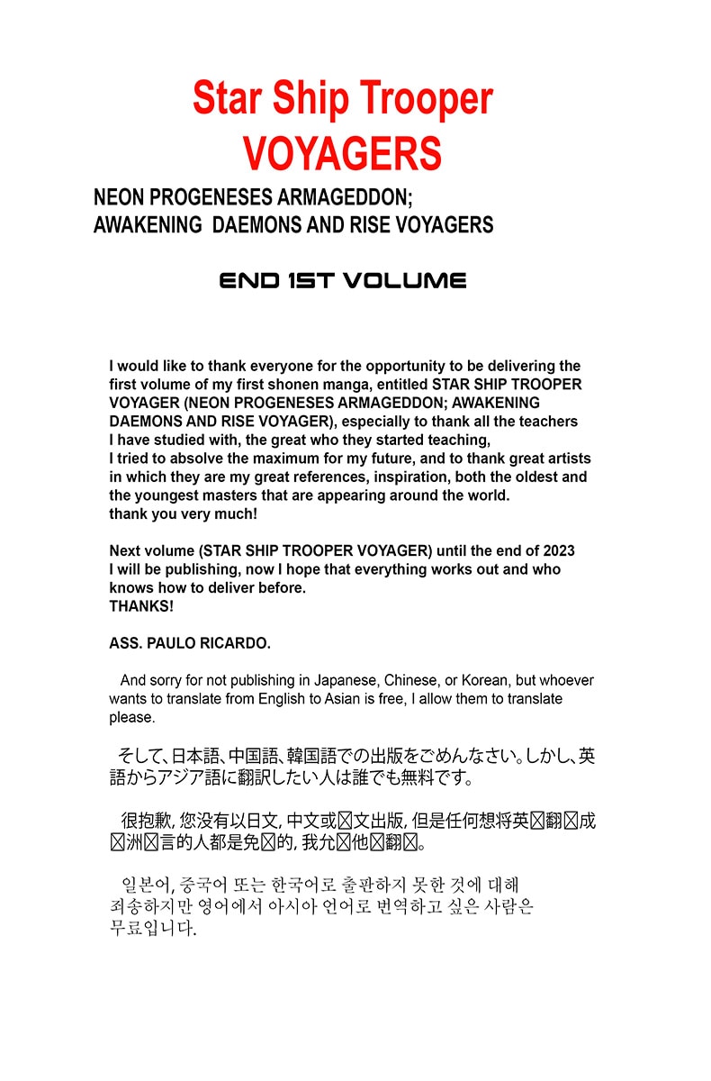 end of volume 1. volumes 2 and 3 will be published at the end of 2023 or shortly before. I will be reviewing some errors that made this first volume a little violent for being a shonen and ended up being censored on other platforms. I promise to correct this little mistake and come back even better. grateful PAULO RICARDO
