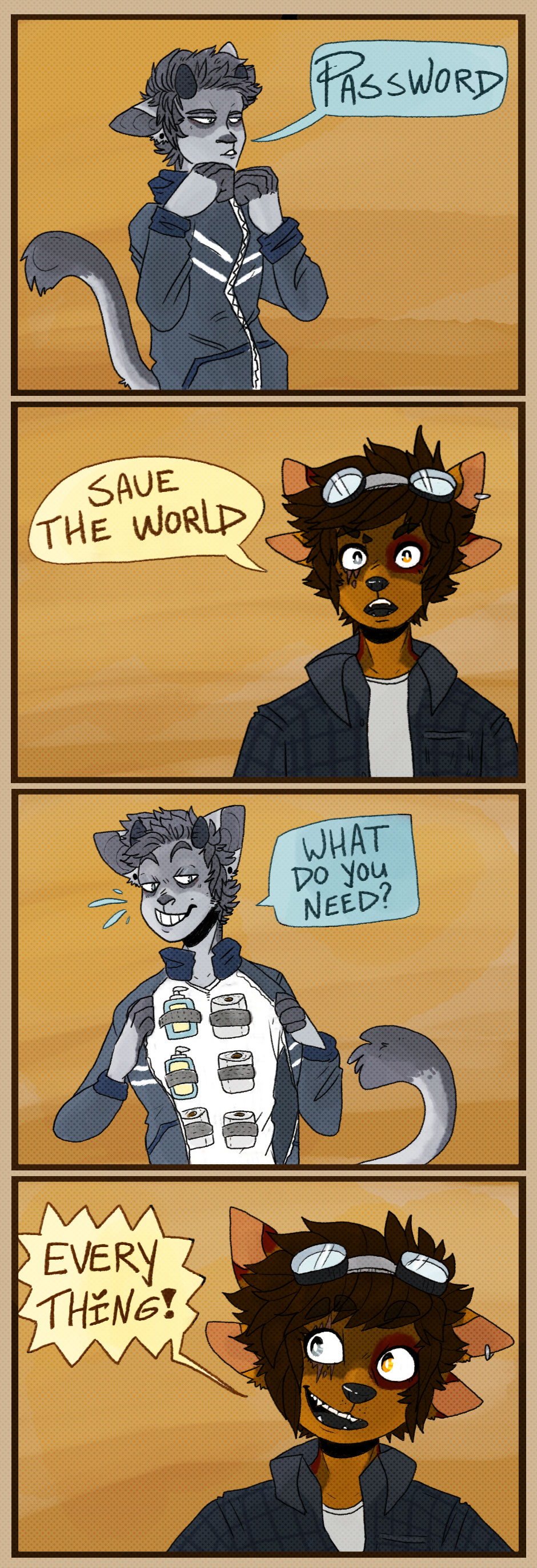 finish the comic about the weird behaviour from some people by buying toilet paper because the COVID-19 but you know you don't have diarrhea when you have the illness so..... also the soap is something ells and is indeed needed by COVID-19 but still some people make a big deal of it when they are just okey.... like some people are already ill and if they get it it's over and you don't hear them so..... also some people also ask me if I'm okey if I should get it because I got a ostomy but you know... I'm fine and the only thing what can happen to me is dehydration because I need 2x so much water than a normal person but that is the same like I got the normal flu.