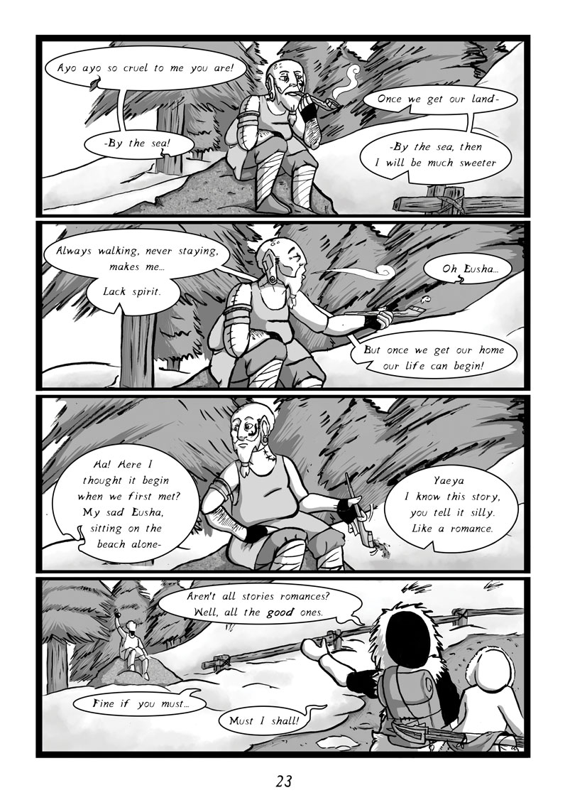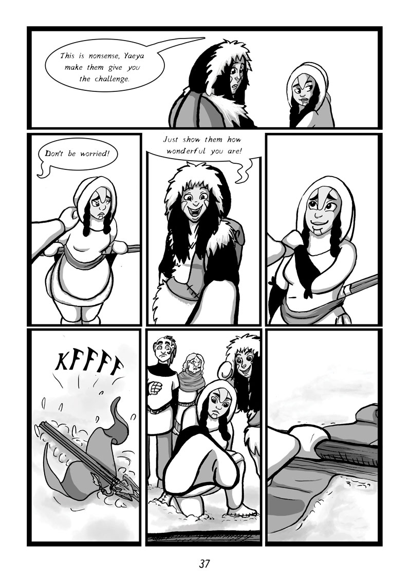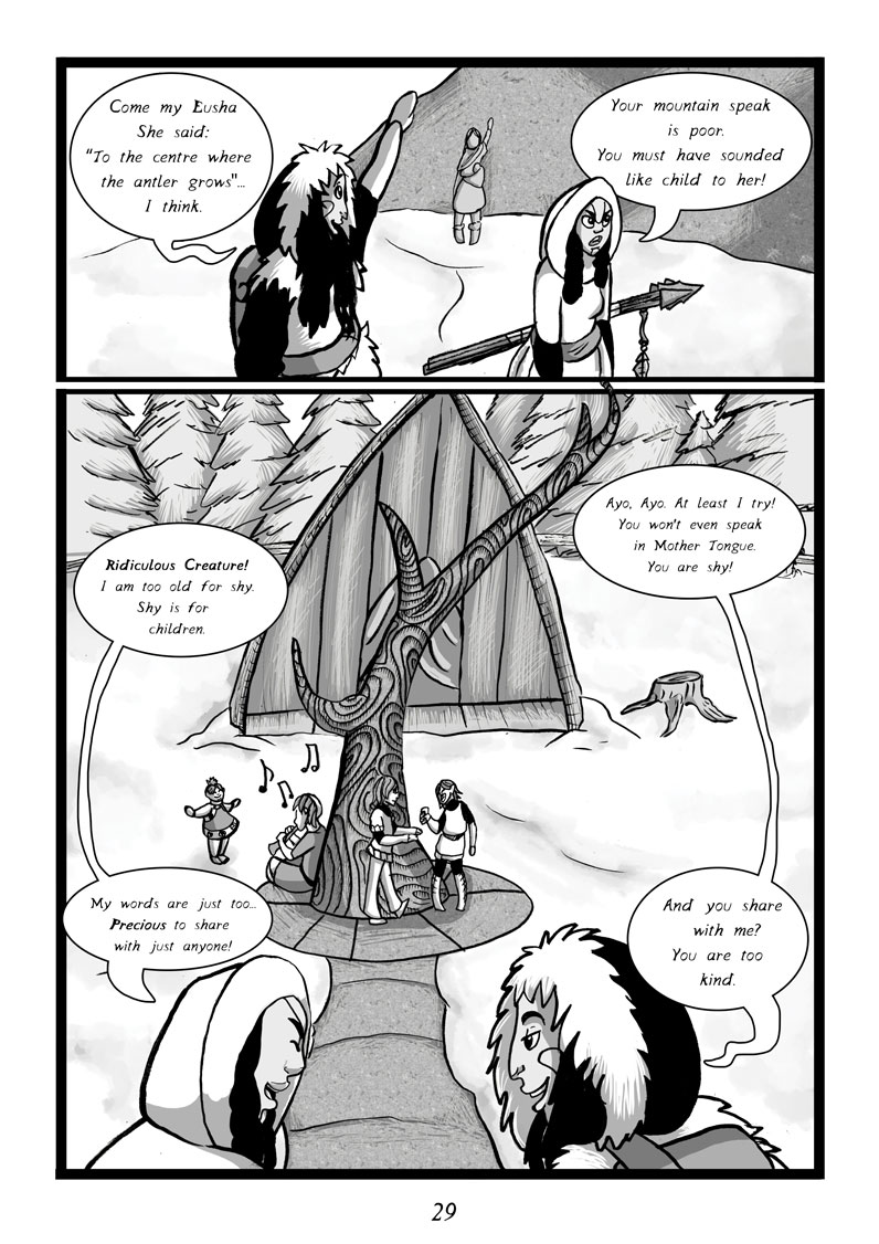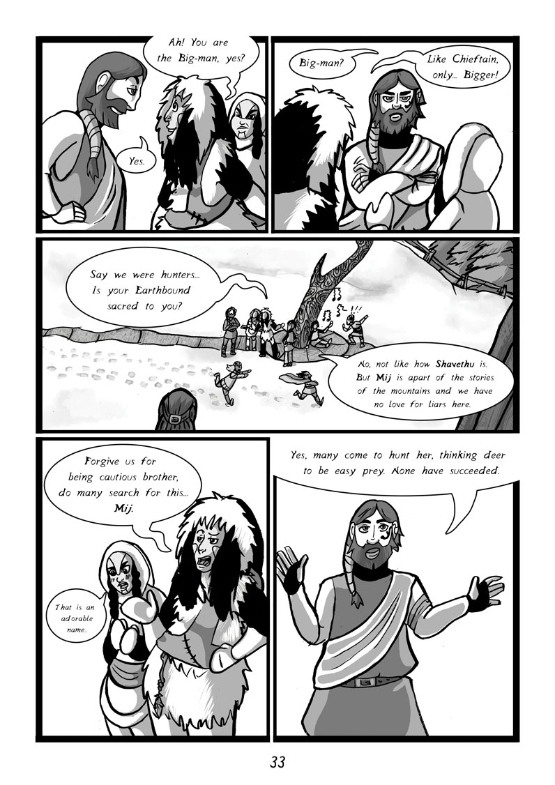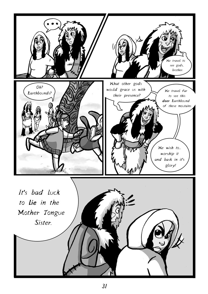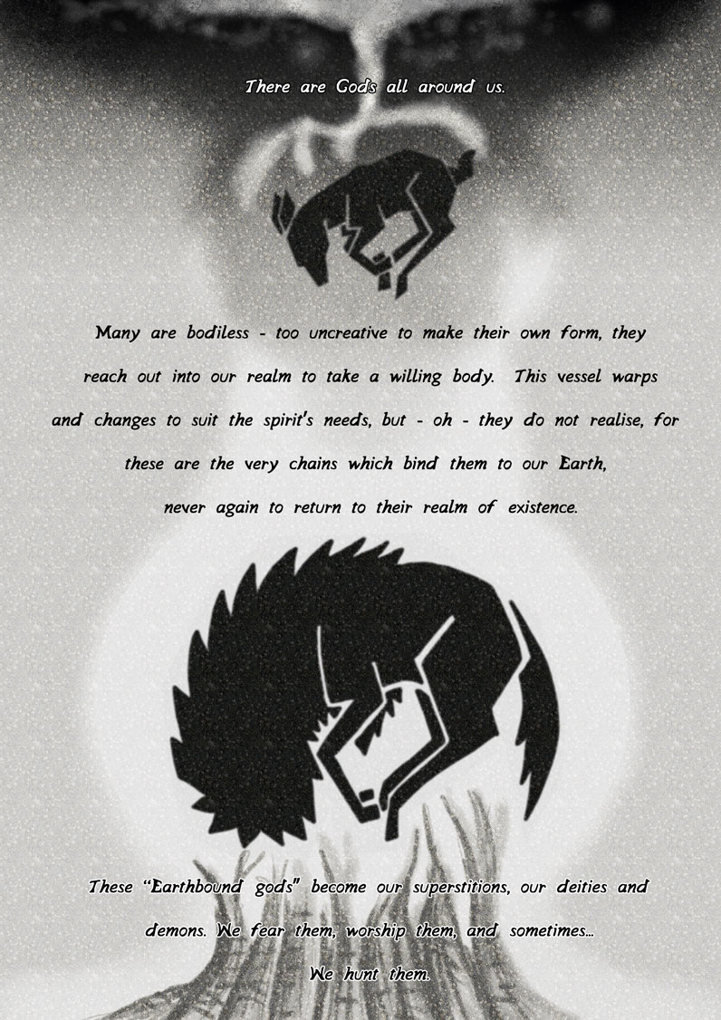 As the snow deepens, Yaeya and Eusha, two wondering hunters, journey to the mountains lands in search of the earthbound god Mij; a terrifying deer-like creature, to take its heart and present it to a rich dying duke.