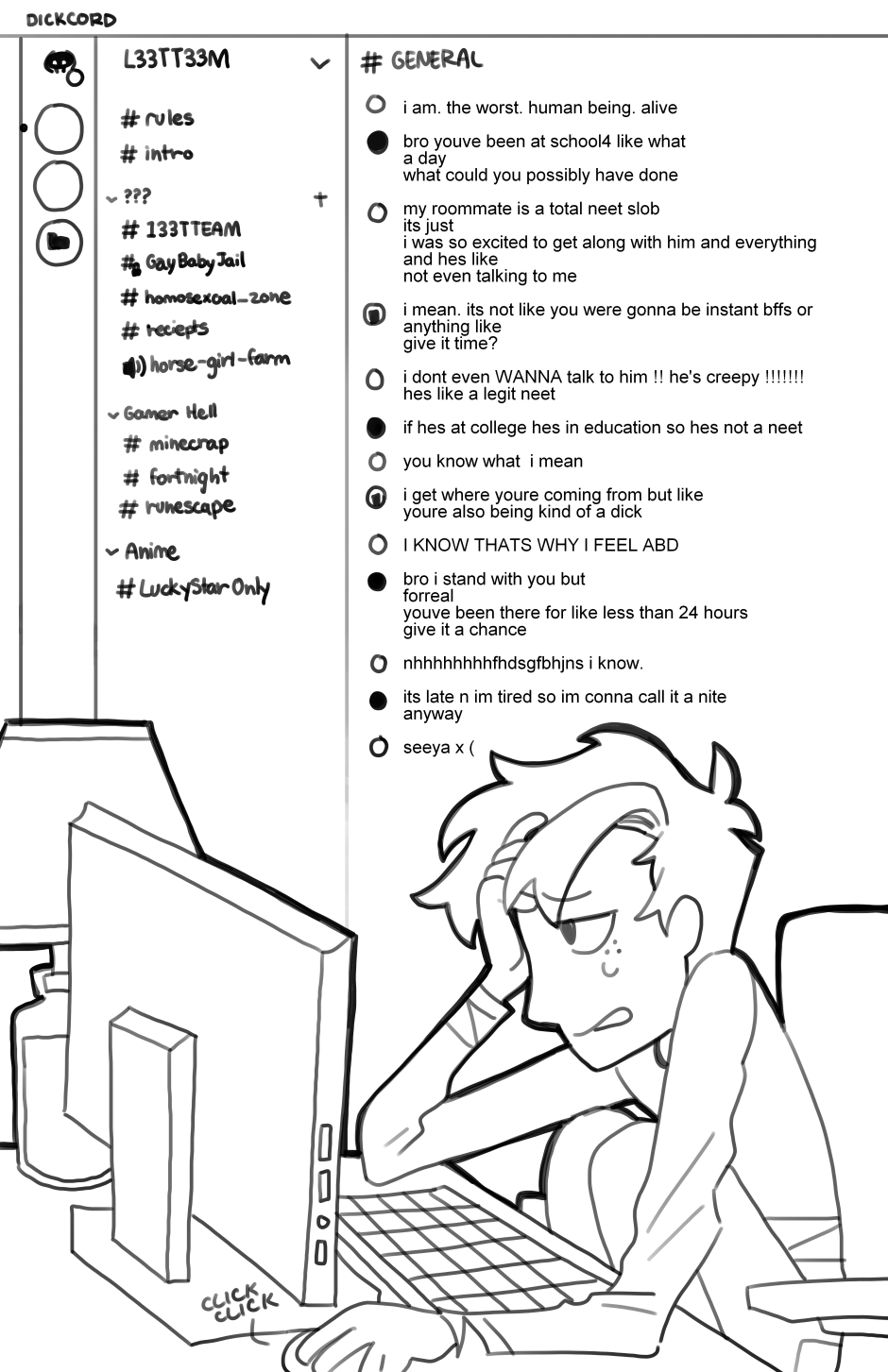When Wally moves into his new freshman dorm at university, he discovers that his nerdy roommate, Joey, isn't just the boring, stereotypical gamer nerd guy that he appears to be. Instead, he lives a double life as his online alter-ego "Gl0ssey", a prolific twitch streamer and e-girl heartthrob.