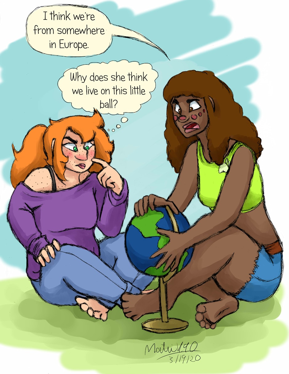 Matay is trying to figure out where her and Buna originally came from in there time period. So far she's narrowed it down to Europe but still can't figure out the country. Buna isn't as clear on the concept of living on a planet.