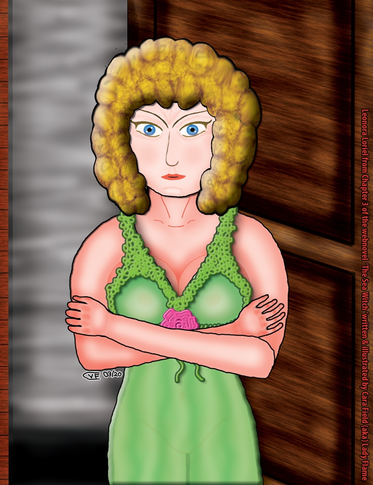 Chapter 3 Illustration: Leonora Loriel, outside her cabin on The Sea Witch.