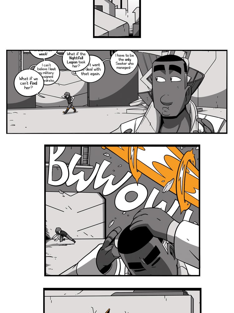 In the city of High Steps, people live peacefully alongside datadrakes - robotic dragon creatures native to the planet. But an aggressive alien army - the Nightfall Legion - is threatening to destroy everything they've built together. The only hope for survival is a desperate quest for lost knowledge that will take High Steps resident Athena and her datadrake Khys into a world of danger. This is the Daybreak Protocol.